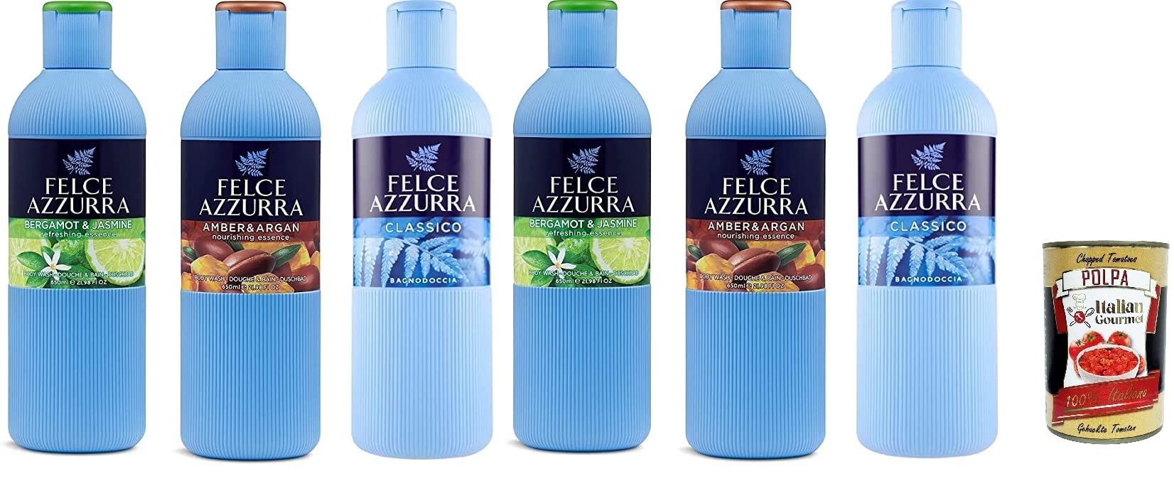 Italian Gourmet E.R. Paglieri Felce Azzurra Shower Gel with a Distinctive Skin Moisturising Fragrance 650 ml + Polpa Italian Gourmet 400 g Pack of 6