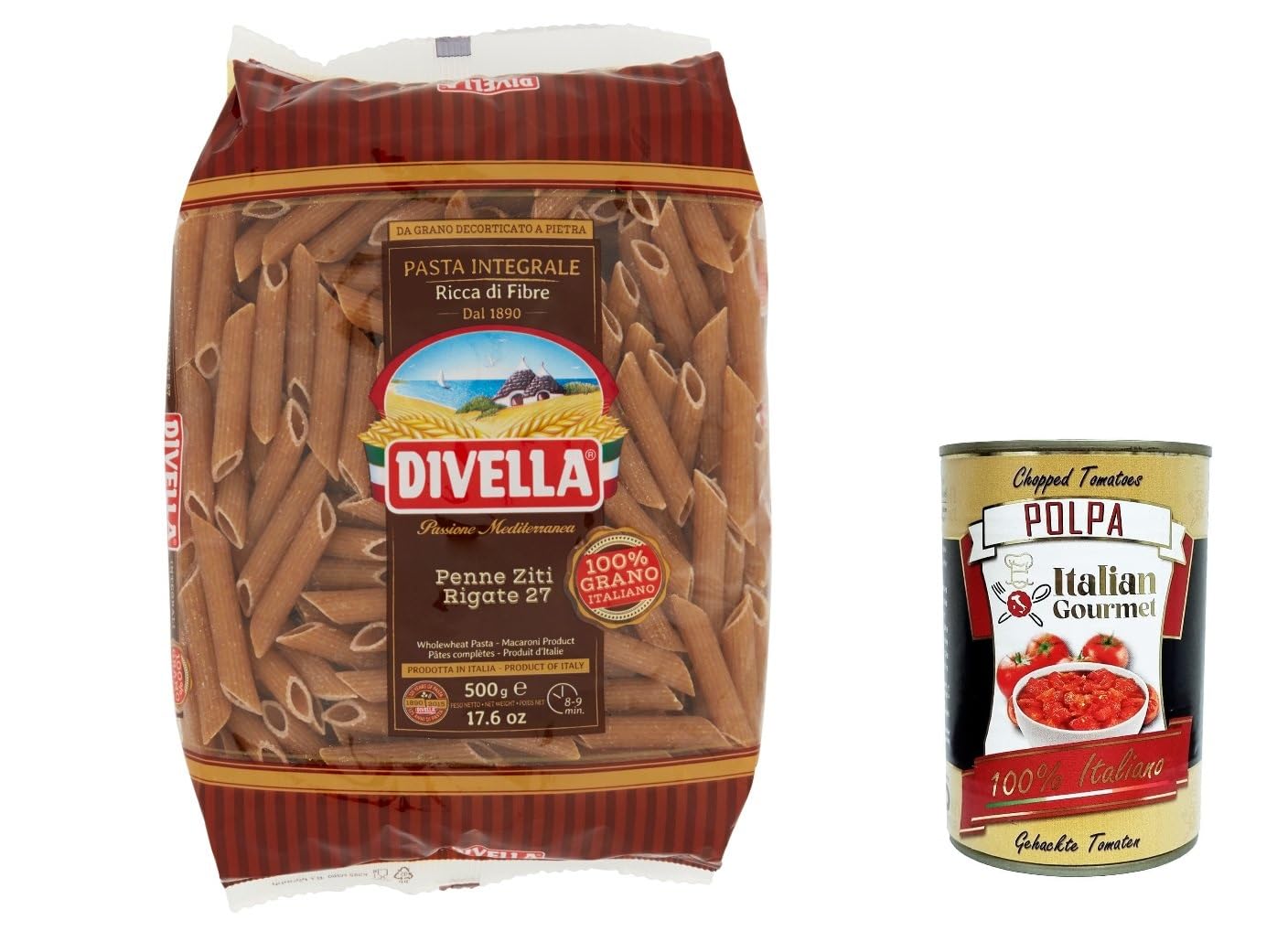 Italian Gourmet E.R. Pasta Divella Penne ziti rigati Pack of 10 Italian whole wheat pasta no. 27 500g + Italian Gourmet Polpa 400g