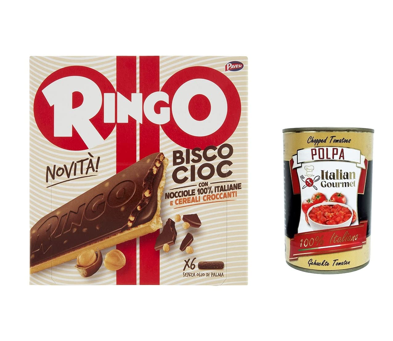 Italian Gourmet E.R. Pavesi Ringo Bisco Cioc Nocciole 162 g 162 g Cream Stuffed Cookies 100% Italian Hazelnuts and Gourmet Italian Pulp 400 g