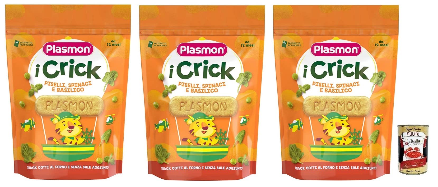 Plasmon i Crick Lot de 3 sachets de 100 g avec petits pois, épinards, basilic boîte de 400 g