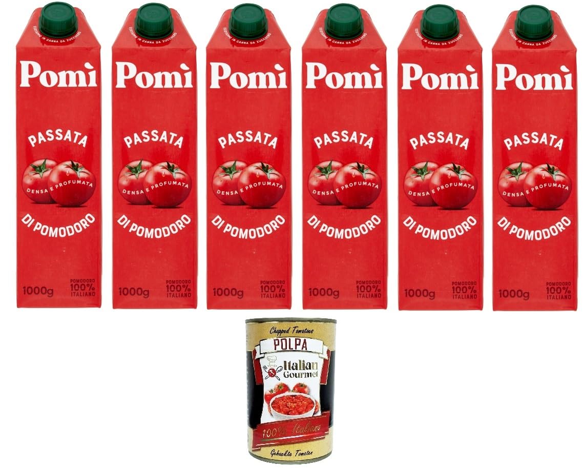 POMI' Lot de 6 purées de tomates en 1 kg Brik Italian Gourmet Polpa 400 g