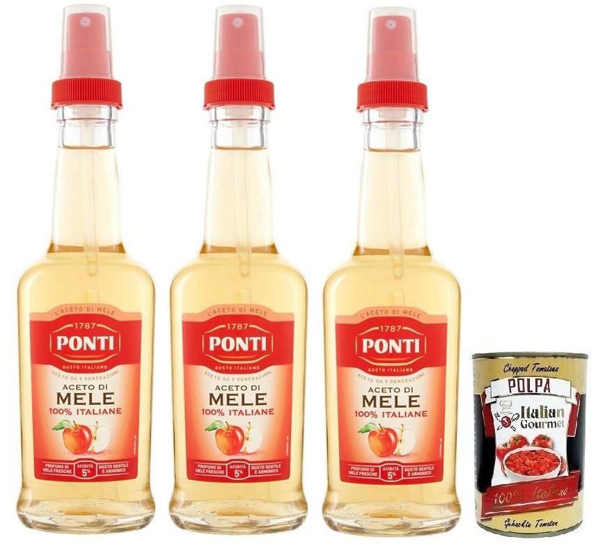 Ponti Aceto di Mele Lot de 3 sprays, acide 5 vinaigre de cidre de pomme, fabriqué à partir de pommes italiennes, 250 ml boîte de 400 g Italian Gourmet Polpa di Pomodoro