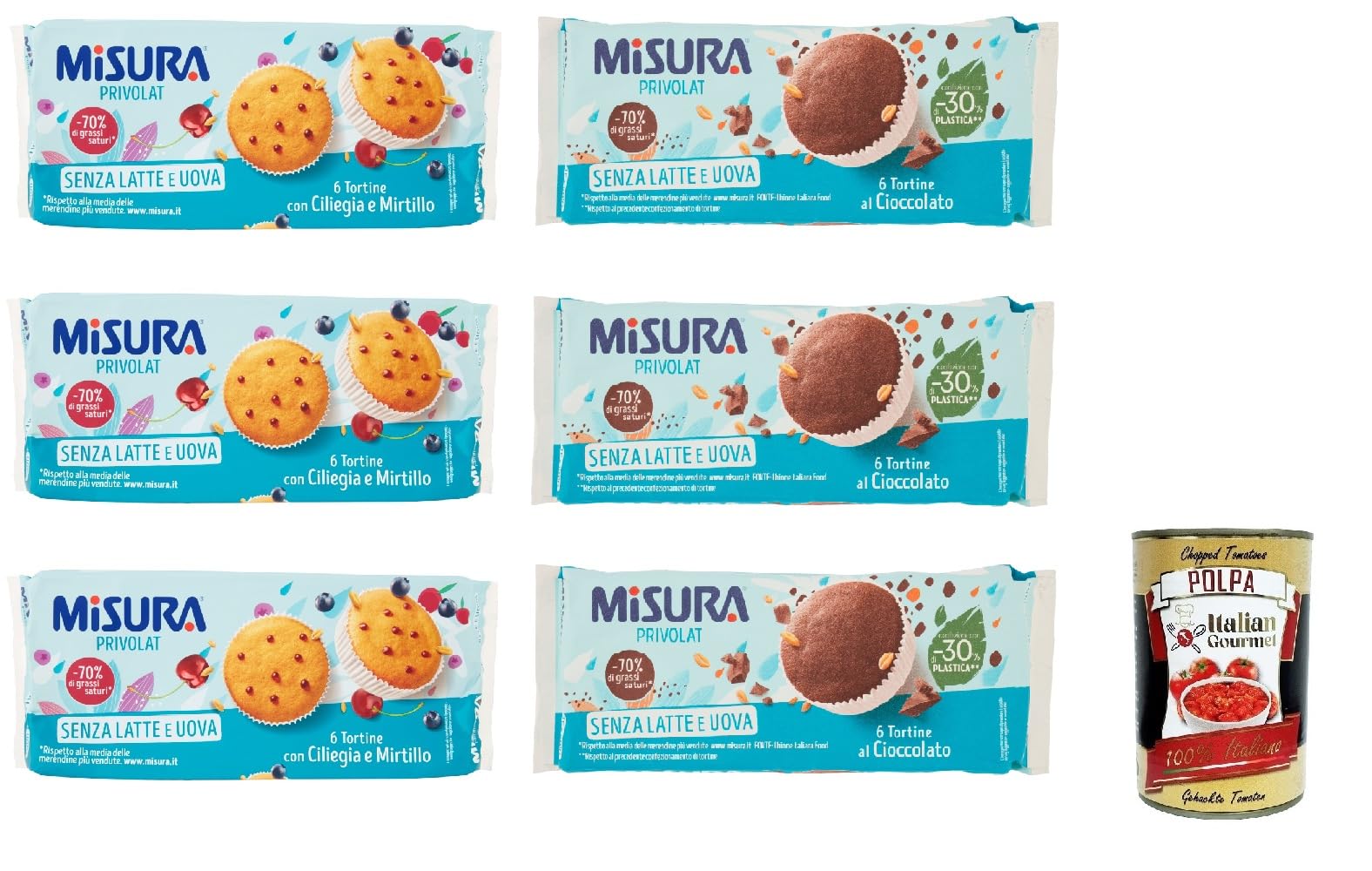 Misura Tortine con Ciliegia e Mirtillo et Cioccolata Privolat Lot de 6 tartelettes à la cerise et myrtille sans lait ni œufs 290 g Polpa Italian Gourmet Polpa 400 g