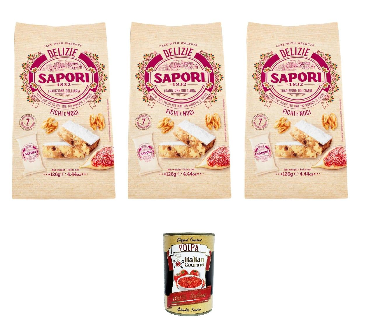 Italian Gourmet E.R. Ricciarelli Flavours Delights Figs and Hazelnuts with Figs and Nuts 126g + Italian Gourmet Pulp 400g