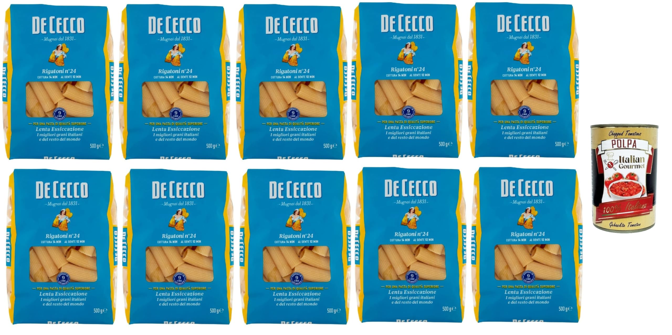 Lot de 10 pâtes de Cecco 100 italiennes Rigatoni N 39 500 g Polpa Italian Gourmet Polpa 400 g