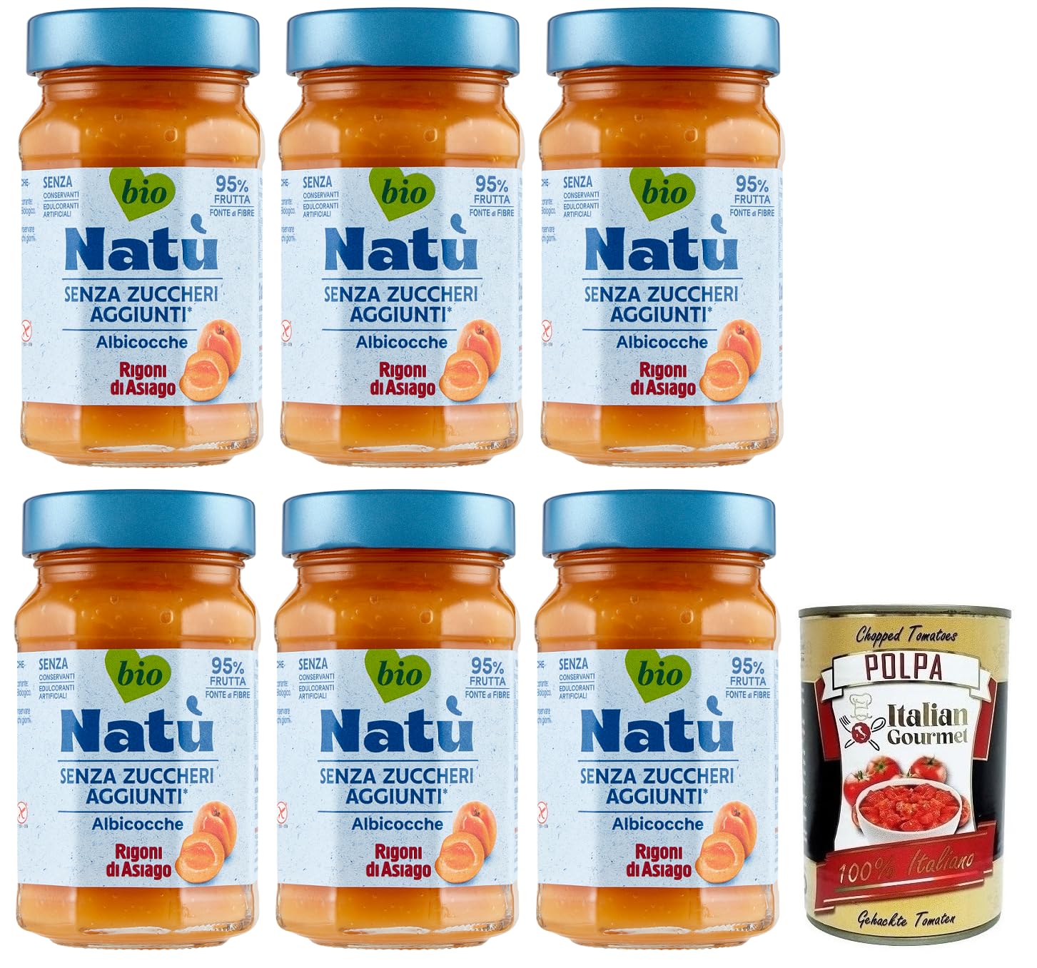 Rigoni di Asiago Natù Albicocche Lot de 6 boîtes de confiture d'abricots bio sans sucre ajouté 240 g Polpa di Pomodoro Italian Gourmet Polpa di Pomodoro Boîte de 400 g