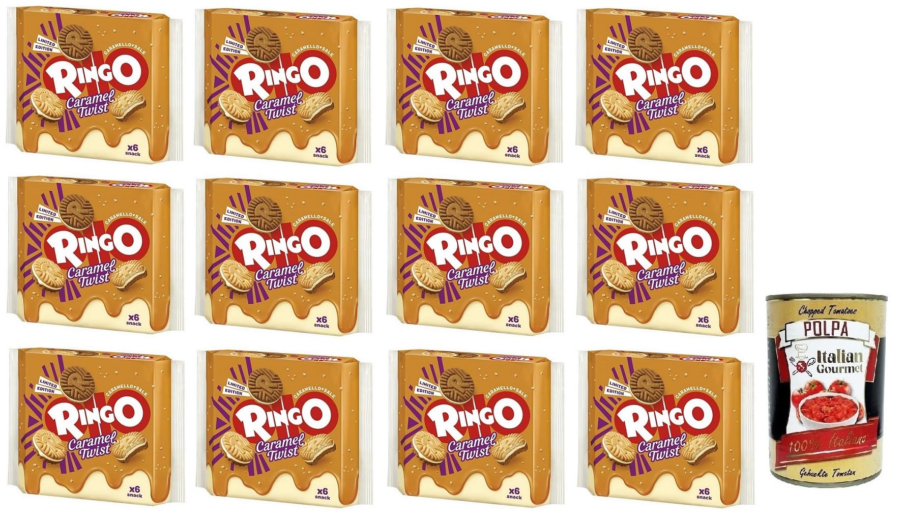 Italian Gourmet E.R. Ringo Caramel Twist Lot of 12 cookies topped with salted caramel cream 165 g Each package contains 6 individual servings + Gourmet Italian Tomato Pulp Tomato Pulp 400 g