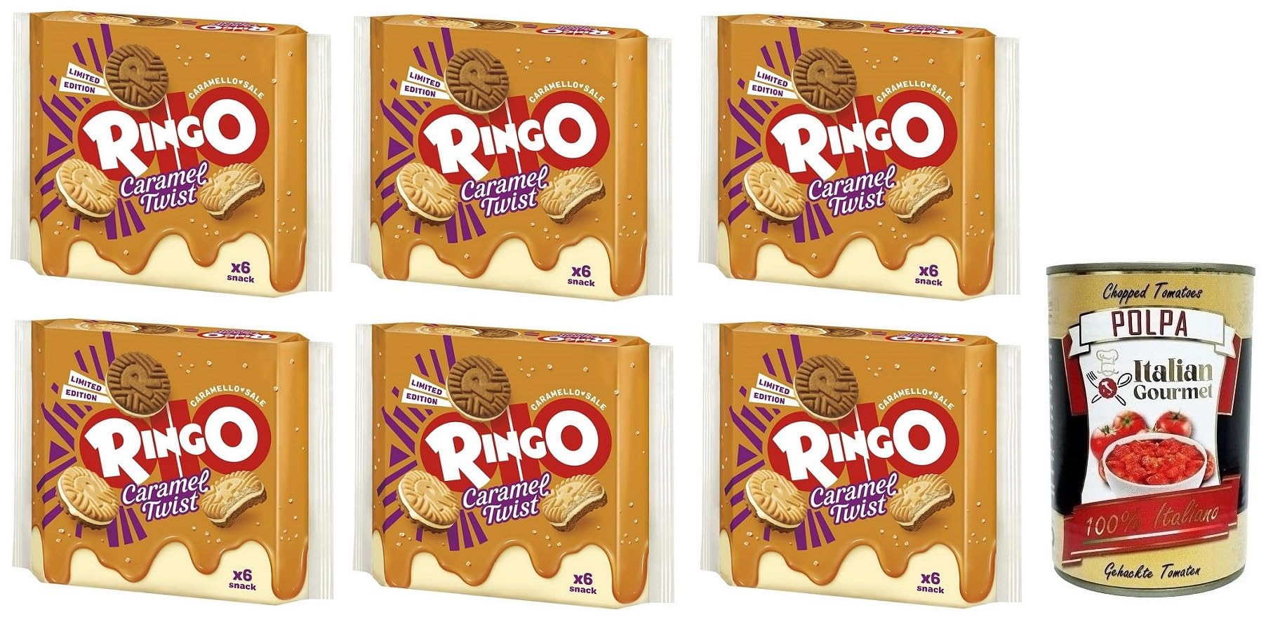 Italian Gourmet E.R. Ringo Caramel Twist Set of 6 Biscuits Filled with Salted Caramel Cream 165 g Each pack contains 6 individual servings + Polpa di Pomodoro Italian Gourmet Polpa di Pomodoro 400 g