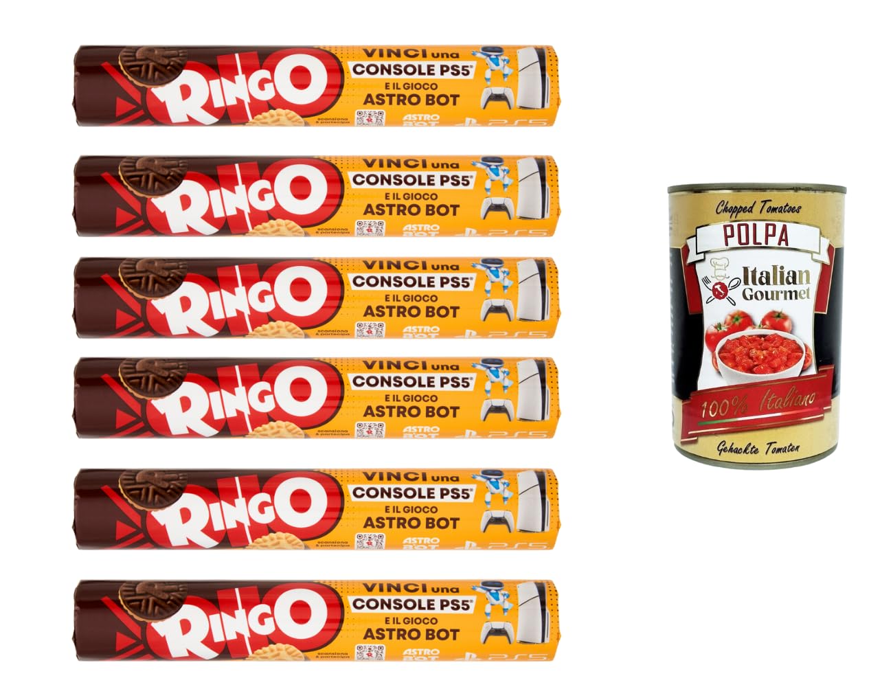 Enjoy the unmistakable taste of Ringo Italian Double Biscuits: crispy cocoa biscuits filled with a creamy vanilla filling. This 6-roll pack of 165g biscuits is ideal for the whole family – perfect for breakfast, school, the office, or as a sweet treat. Imported directly from Italy and carefully packaged by Italian Gourmet to ensure the biscuits arrive fresh, crispy, and fragrant. Each roll is conveniently packaged and fits easily into a backpack, handbag, or desk drawer. Whether with coffee, tea, cocoa, or simply as a snack, Ringo offers the typical pleasure of Italian biscuits that children and adults alike love. Also ideal for guests, parties, birthdays, or as an accompaniment to ice cream and desserts. With their combination of crispy biscuits and smooth cream, Ringo Double Biscuits are a true classic of Italian confectionery. Bring a piece of Italy home and fill your lunchbox with a supply of delicious biscuits for every occasion. INGREDIENTS Biscuits (73 ): Wheat flour, sugar, sunflower oil, sweet starch, low-fat cocoa 1.8 , glucose syrup, whey powder, salt, baking agents (sodium carbonate, ammonium carbonate), flavoring. Cream (27 ): Sugar, non-hydrogenated vegetable fat and oil (cocoa, sunflower), low-fat cocoa 2.6 , DOUCT, nuts, flavorings. Percentages are based on the finished product. May contain traces of other nuts, sesame, soy, and eggs. SAFETY WARNING • Storage: Store in a cool, dry place away from heat and direct sunlight. See moreRingo Lot de 6 biscuits doubles au cacao et à la vanille - 6 x 165 g - Snack familial - Biscuits à sandwich italiens pour enfants, école, bureau, stocks polpa gourmet italienDESCRIPTION DU PRODUIT DESCRIPTION DU PRODUIT Profitez du goût incomparable de Ringo double biscuits italiens : des biscuits au cacao croustillants remplis d'une garniture crémeuse à la vanille. Ce pack de 6 rouleaux de 165 g est idéal pour toute la famille – parfait pour le petit déjeuner, l'école, le bureau ou comme pause sucrée. Importé directement d'Italie et emballé avec soin par Italian Gourmet pour que les biscuits arrivent frais, croustillants et aromatiques. Chaque rouleau est emballé de manière pratique et se range facilement dans un sac à dos, un sac à main ou un tiroir de bureau. Que ce soit pour le café, le thé, le cacao ou tout simplement comme collation, Ringo offre le plaisir typique des biscuits italiens que les enfants et les adultes adorent. Idéal également pour les invités, les fêtes, les anniversaires ou comme accompagnement de glaces et de desserts. Avec leur combinaison de biscuits croustillants et de crème fondante, les biscuits doubles Ringo sont un véritable classique de la confiserie italienne. Apportez un morceau d'Italie à la maison et remplissez votre boîte à goûter avec un stock de délicieux biscuits pour chaque occasion. INGRÉDIENTS Biscuits (73 ) : farine de blé, sucre, huile de tournesol, amidon doux, cacao faible en gras 1,8 , sirop de glucose, poudre de lactosérum, sel, produits de cuisson (carbonate de sodium, carbonate d'acide ammonium), arôme. Crème (27 ) : sucre, graisse végétale non hydrogénée et huile (cacao, tournesol), cacao faible en gras 2,6 , DOUCT, noix, arômes. Pourcentages exprimés sur le produit fini. Peut contenir des traces d'autres fruits à coque, senape, soja et œufs AVERTISSEMENT DE SÉCURITÉ • Conservation : conserver dans un endroit frais et sec, à l'abri de la chaleur et de la lumière directe du soleil Voir plus