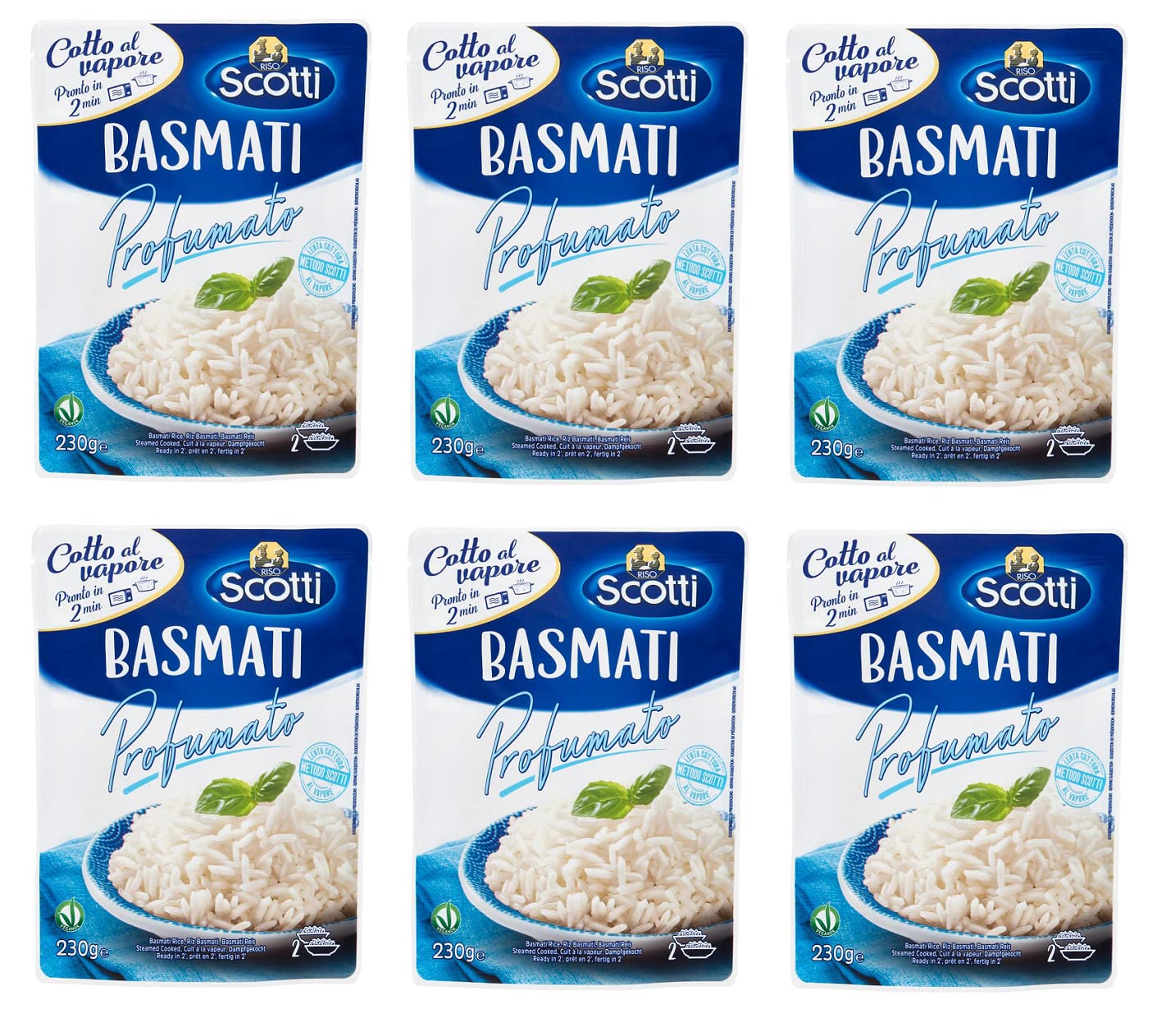 Riso Scotti Basmati Profumato Lot de 6 sachets de riz basmati parfumé prêt à la vapeur 230 g
