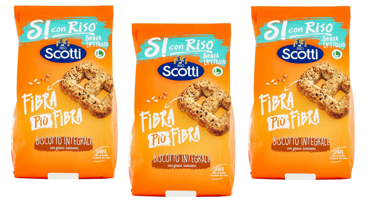 Riso Scotti Si con Riso Biscotto Lot de 3 biscuits à grains entiers sans lactose sans huile de palme, sans protéines de lait 350 g