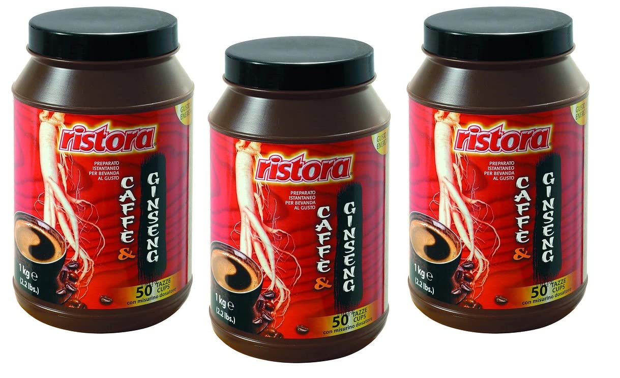 Ingredients: sugar, milk sugar, skimmed milk powder, instant coffee 10 , ginseng powder 0.3 , flavorings. Gluten-free manual preparation: use 1 measuring spoon (approx. 20g of product) per cup (approx. 120ml) of hot water and mix the bar mix. Automatic dispenser: pour the contents of the glass into a special container and adjust the doses to the quantities needed for manual cold preparation: pour one measuring cup (approx. 20g of product) into a glass of cold water and mix. For a creamier texture, add 2 to 3 tablespoons of cooking cream and a few ice cubes and shake. Sweeten to taste. Store in a cool, dry place. Nutritional value per 100g: Energy: 1598 kJ 377 kcal - Fat 0.3g, of which sugars 77.3g. Protein 8.7g Salt 0.2g INGREDIENTS Sugar, milk sugar, skimmed milk powder, instant coffee 10 , ginseng powder 0.3 , flavorings. Gluten-freeRistora Caffè al Ginseng Lot de 3 cafés instantanés avec mélange de ginseng pour boissons, petit-déjeuner pour 50 tasses avec gobelet doseur 1 kgDESCRIPTION DU PRODUIT DESCRIPTION DU PRODUIT Ingrédients : sucre, sucre de lait, lait écrémé en poudre, café instantané 10 , poudre de ginseng 0,3 , arômes. Préparation manuelle sans gluten : utilisez 1 cuillère à mesurer (environ 20 g de produit) pour une tasse (environ 120 ml) d'eau chaude et mélangez la préparation des barres avec un répartiteur automatique : versez le contenu du verre dans un récipient spécial et ajustez les doses environ aux quantités de préparation manuelle à froid manuel : un verre doseur (environ 20 g de produit) verser dans un verre d'eau froide et mélanger. Pour une texture plus crémeuse, ajoutez 2 à 3 cuillères à soupe de crème de cuisson et quelques glaçons et secouez pour le sucre selon vos envies - Conserver au frais et au sec - Valeur nutritive par 100 g : Valeur énergétique : 1598 kJ 377 kcal - Graisse 0,3 g, dont sucre 77,3 g. Protéines ?8 7 g sel 0,2 g INGRÉDIENTS Sucre, sucre de lait, lait écrémé en poudre, café instantané 10 , ginseng poudre 0,3 , arômes. Sans gluten