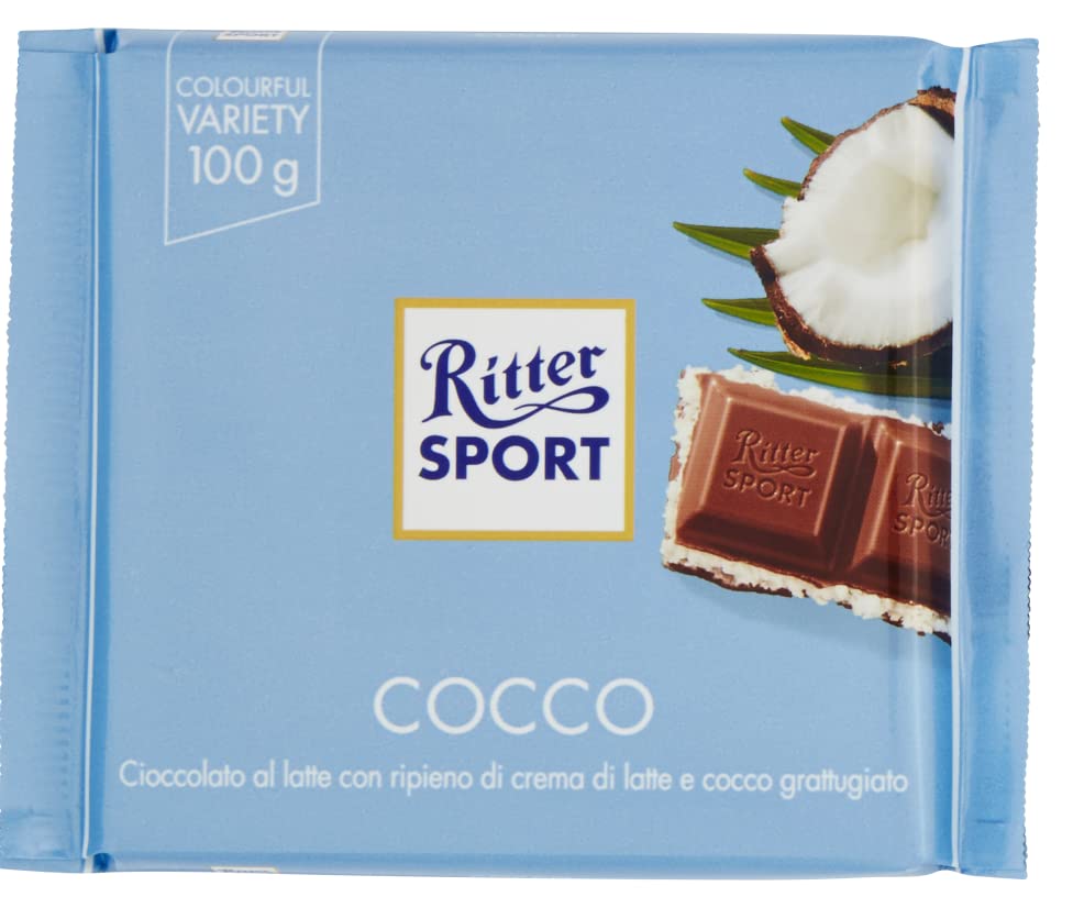 We like to be different. We love variety, and that's why we bring you all the shades of our colorful range: a rainbow of colors where it's really hard to choose your favorite flavor. (But we have a secret: you can have more than one.) Unlike many other RITTER SPORT flavors, this time we're not using our coconuts, but lots of crunchy coconut shavings that give the refined milk cream its exotic touch. Honestly, it's also much more convenient to eat. Ingredients: sugar, palm fat, cocoa butter, coconut flakes (9 ), whole milk powder, cocoa mass, skimmed milk, lactose, coconut milk powder (1 ), emulsifier: soy lecithin, vegetable protein, concentrated lemon juice. May contain peanuts, carbohydrates, and cereals. Contains allergens: may contain cereals containing gluten. May contain eggs. Contains lactose. Contains milk. May contain nuts. Contains peanuts. Average nutritional values per 100g: Energy 2391 kJ (574 kcal). Fat 38g - of which saturates 25g. Carbohydrate 50g - of which sugars 49g. Protein 5.9g. Salt 0.18g. INGREDIENTS Sugar, Palm Fat, Cocoa Butter, Coconut Flakes (9 ), Milk Powder, Cocoa Mass, Skimmed Milk Powder, Coconut Milk Powder (1 ), Glucose Syrup, Emulsifier: Soy Lecithin, Vegetable Protein, Concentrated Lemon Juice. May contain peanuts, nuts, cereals containing gluten, and eggs.Ritter Sport Colourful Variety Cocco Chocolat au lait farci à la crème au lait et noix de coco hachée 100 gDESCRIPTION DU PRODUIT DESCRIPTION DU PRODUIT Nous aimons être différents. Nous aimons la variété et c'est pourquoi nous vous apportons toutes les nuances de notre gamme colorée : un arc-en-ciel de couleurs où il est vraiment difficile de choisir votre goût préféré. (Mais nous avons un secret : vous pouvez en avoir plusieurs). Contrairement à de nombreuses autres saveurs de RITTER SPORT, nous n'utilisons pour une fois nos noix de coco, mais beaucoup de râpes de coco croustillantes qui donnent à la crème au lait raffinée leur note exotique. Honnêtement, c'est aussi beaucoup plus pratique à manger. Ingrédients : sucre, graisse de palme, beurre de cacao, flocons de coco (9 ), poudre de lait en poudre, pâte de cacao, lait écrémé, lactose, poudre de lait de coco (1 ), émulsifiant : lécithine de soja, protéines végétales, jus de citron concentré. Peut être arachides, glucides. céréales riches Contient des allergènes : peut contenir des céréales contenant du gluten. Peut contenir des œufs. Contient du lactose. Contient du lait. Peut contenir des fruits à coque. Contient des cacahuètes. Contient des valeurs nutritives moyennes pour 100 g : énergie 2391 kJ (574 kcal). Graisse 38 g - dont acides gras saturés 25 g de glucides glucides 50 g. g - dont sucre 49 g de protéines 5,9 g de sel 0,18 g. INGRÉDIENTS Sucre Graisse de palme Beurre de cacao Flocons de coco (9 ) Lait en poudre Pâte de cacao Lait écrémé en poudre Lait de coco en poudre (1 ) Sirop de glucose Émulsifiant: Lécithine de soja Protéines végétales Jus de citron concentré Peut contenir des arachides, des fruits à coques, des céréales contenant du gluten et des œufs