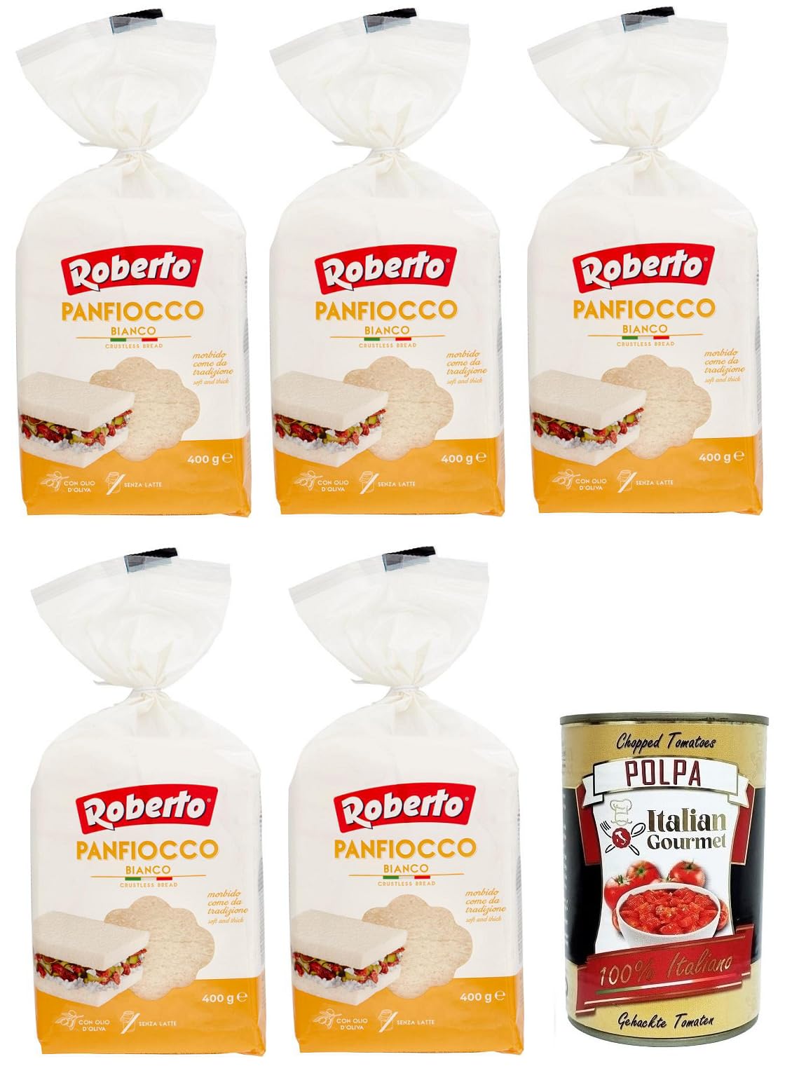 Roberto Panfiocco Bianco Lot de 5 pains blancs doux sans croûte, 400 g boîte de 400 g