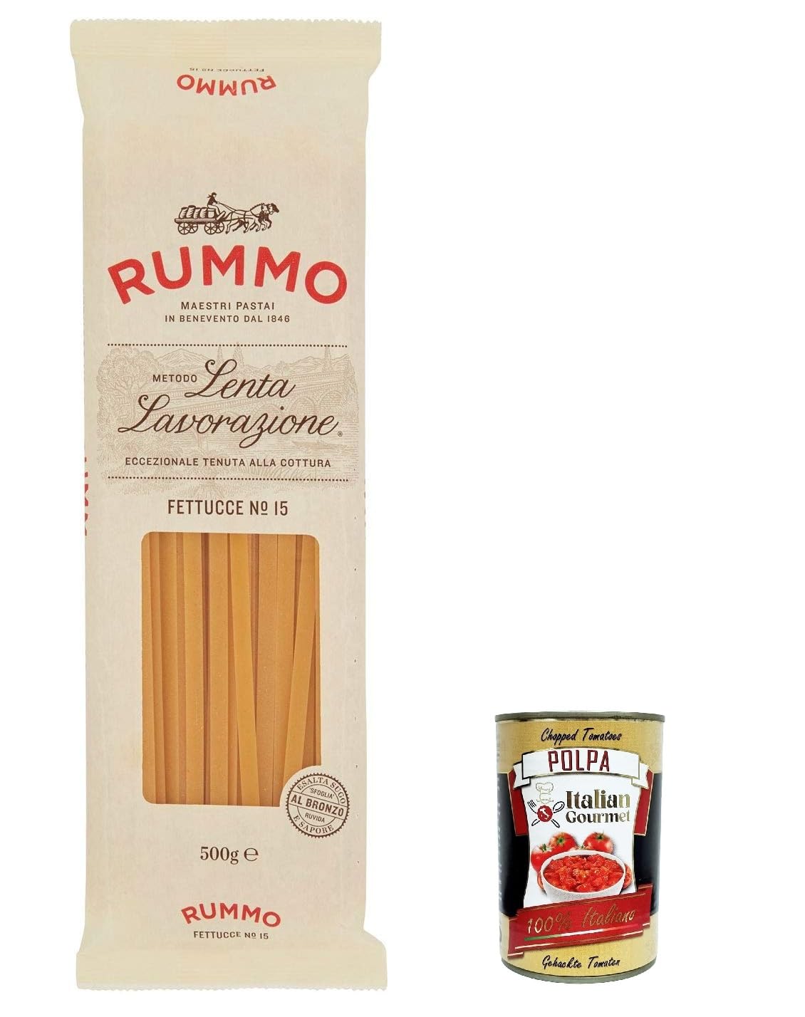 Italian Gourmet E.R. Rummo Fettucce n.15 Pasta Lenta Lavorazione Pasta Durum Wheat Semolina Bronze Design 500 g + Italian Gourmet Pulp 400 g