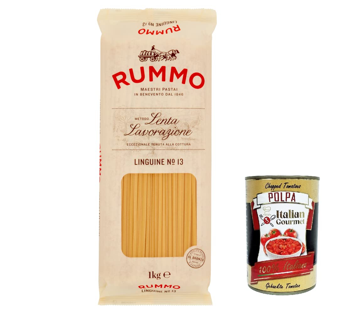 Rummo Linguine N. 13 Lot de 8 pâtes à la semoule de blé dur 500 g boîte italienne Gourmet Polpa di Pomodoro 400 g