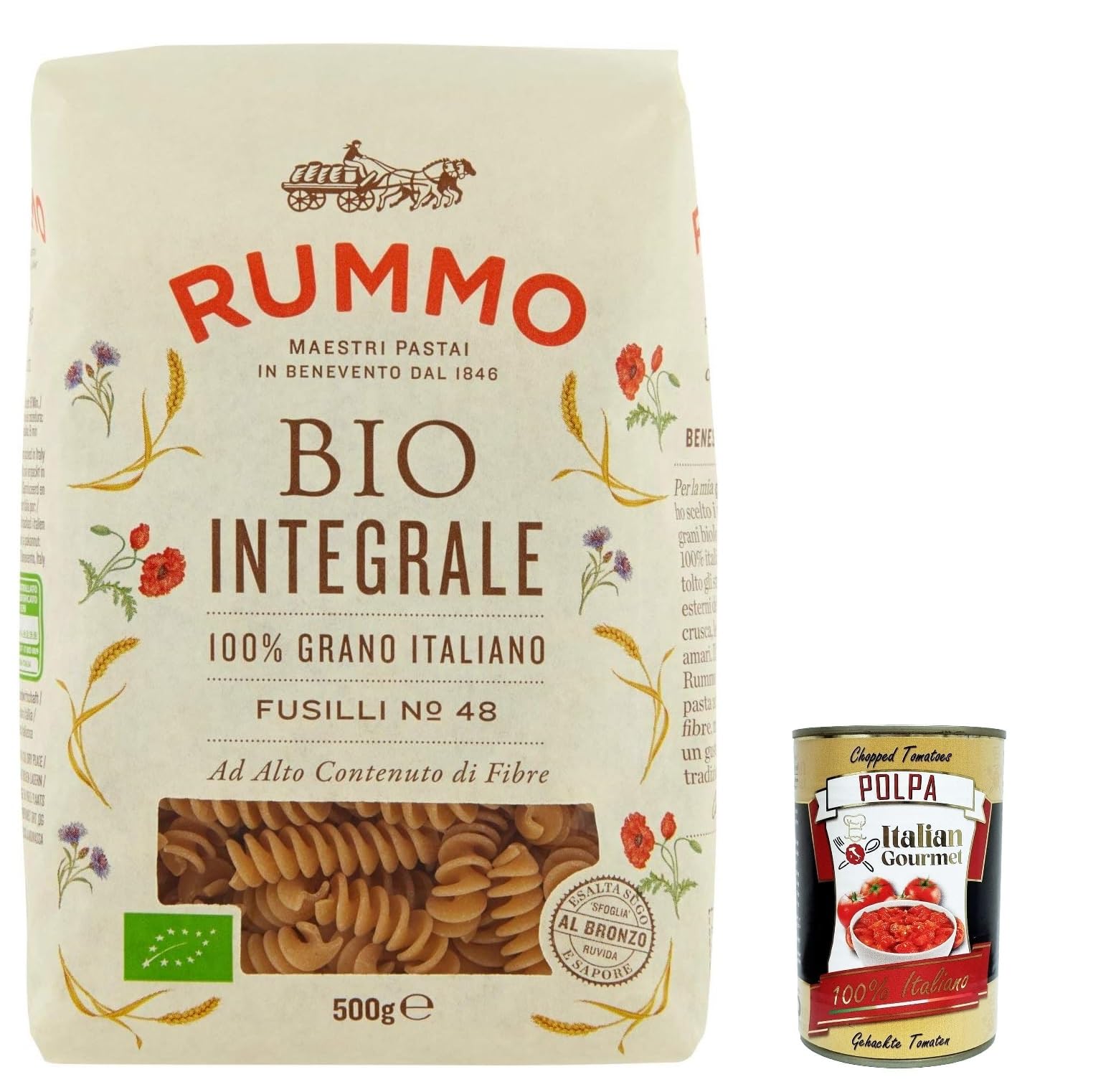 Italian Gourmet E.R. Rummo Pasta Integrale Fusilli N. 48 Pack of 10 Italian pasta 500 g + Italian Gourmet polpa 400 g