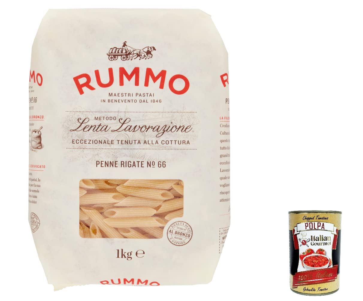 Rummo Penne Rigate N. 66 Lot de 8 pâtes à la semoule de blé dur 1 kg boîte italienne Gourmet Polpa di Pomodoro 400 g