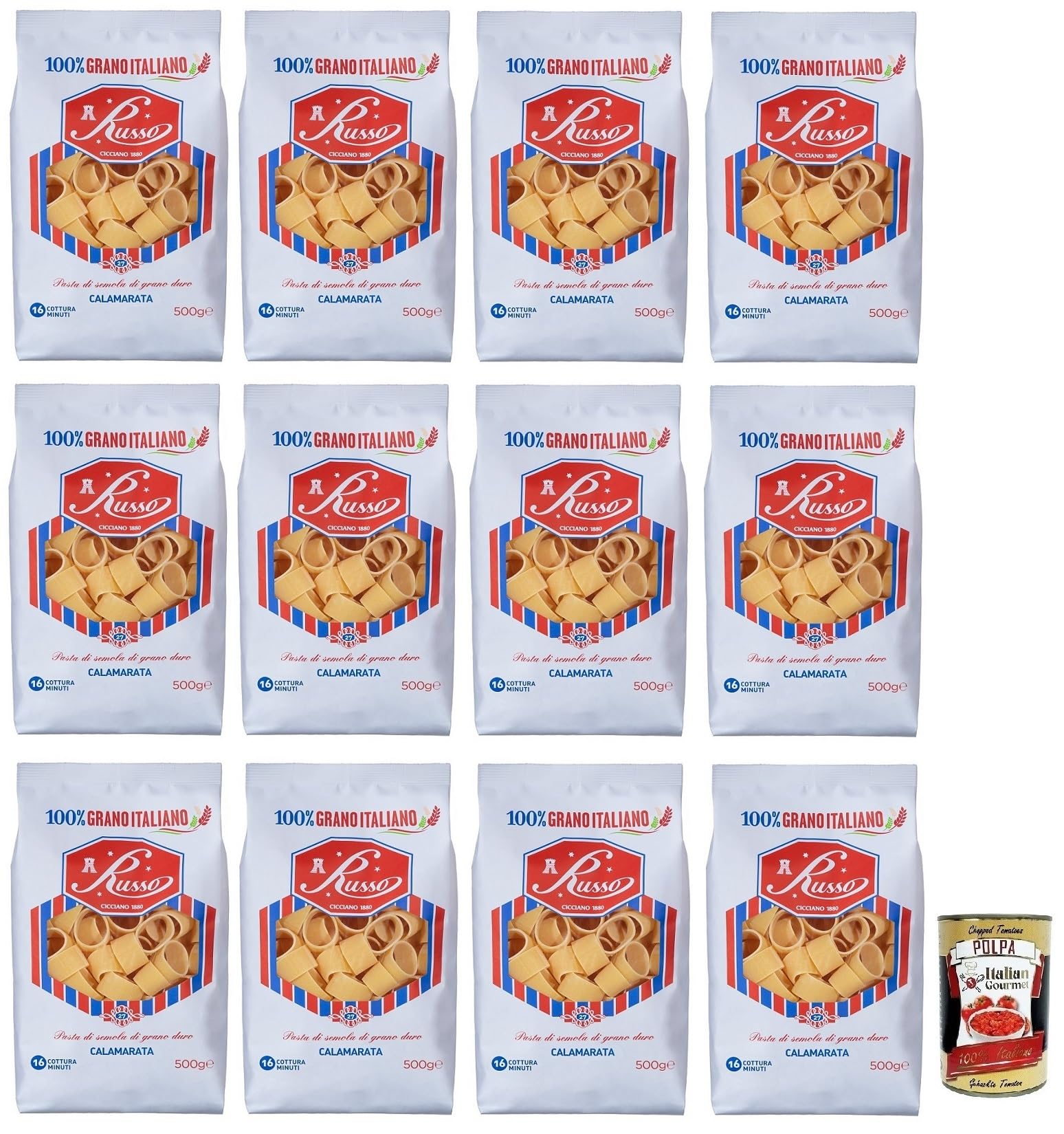Russo Calamarata N 27 Lot de 12 pâtes à semoule de blé dur 100 blé italien 500 g boîte de 400 g