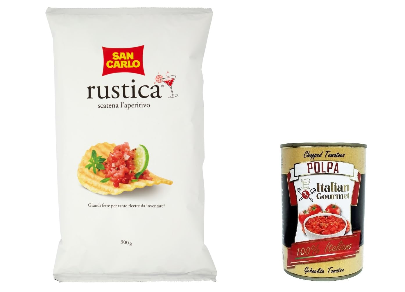 Italian Gourmet E.R. San Carlo Rustica Pack of 6 Salted Potato Chips 300g Potatoes + Italian Gourmet Polpa 400g