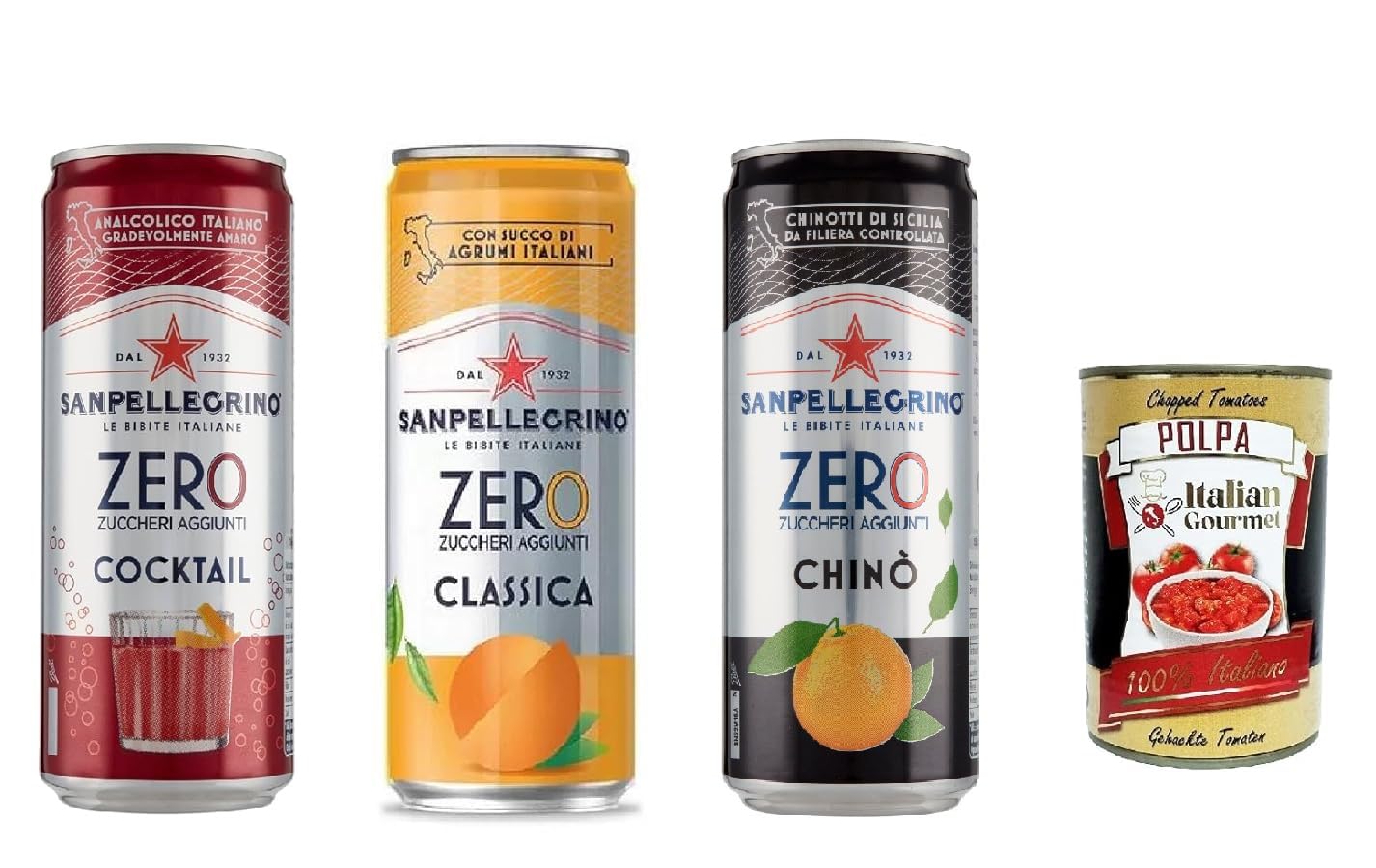 Italian Gourmet E.R. San Pellegrino Chinotto zero cocktail and orangeade ginger zero canettes sans sucre 33 cl Aperitif soda sans alcool + polpa italienne gourmet 400 g
