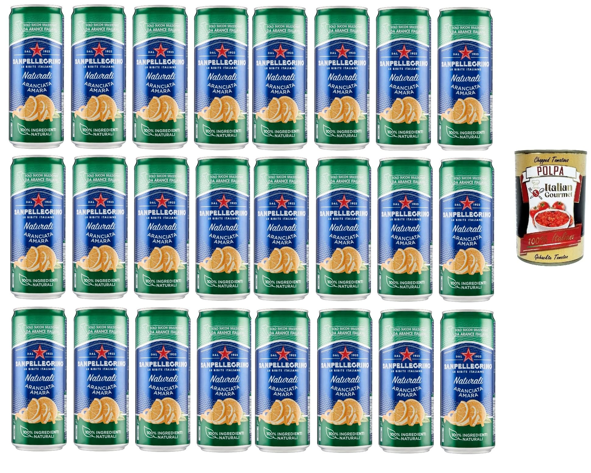 Italian Gourmet E.R. SanPellegrino Aranciata Amara Lemonade Orange 'Bitteroange' 330 ml + Italian Gourmet Pulp 400 g