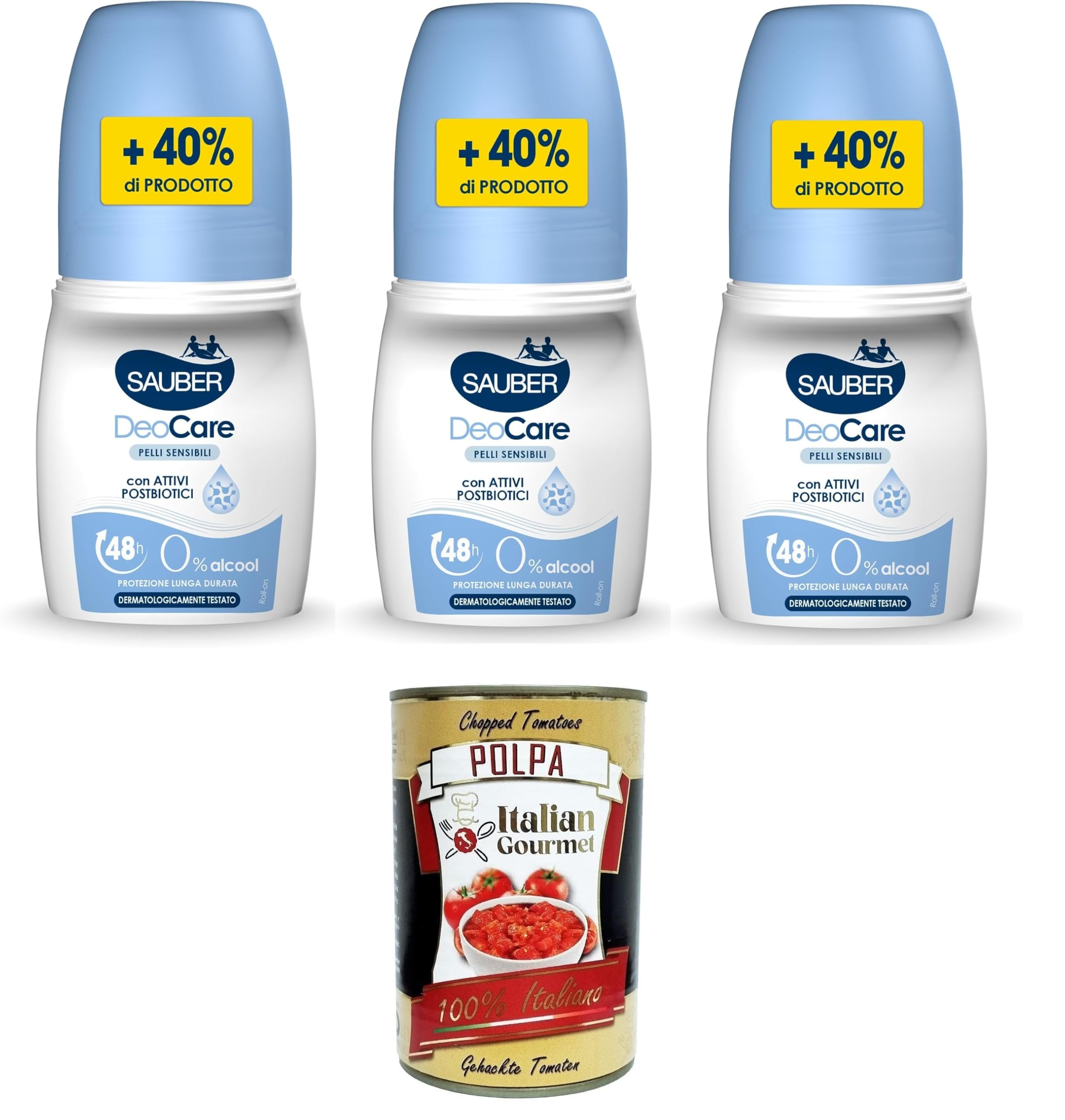 Sauber DeoCare Pelli Sensibili Déodorant roll-on pour peaux sensibles 3 x 70 ml Italian Gourmet Polpa 400 g