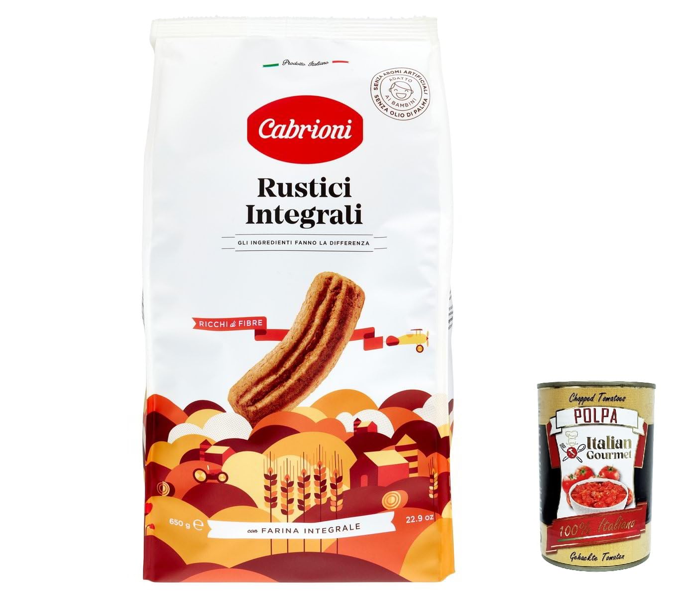 Italian Gourmet E.R. Set of 6 Cabrioni Biscotti Rustici Integrali Biscuits Rustic Biscuits Whole Grain Flour 650g + Italian Gourmet Polpa 400g