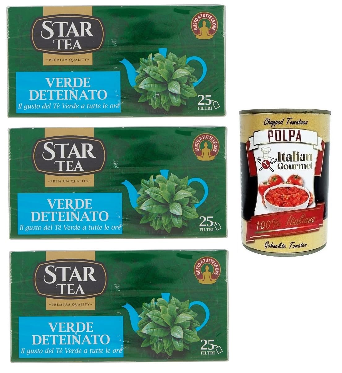 Italian Gourmet E.R. Star Tea Verde Decaffeinato Lot de 3 paquets de 25 filtres + Pulpa di Pomodoro Italian Gourmet Pulpa di Pomodoro 400 g