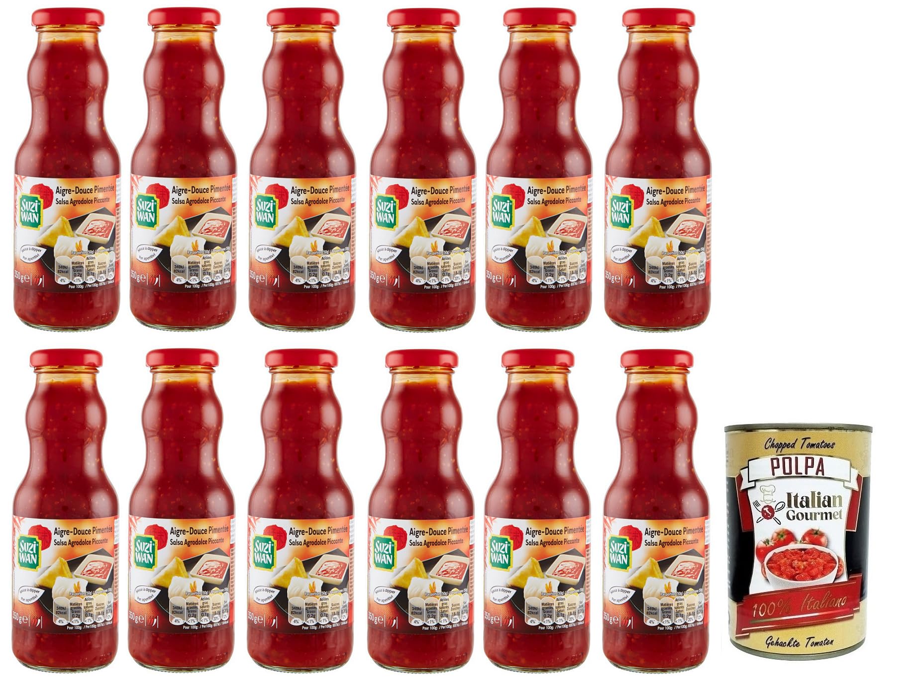 Italian Gourmet E.R. Suzi Wan Hot and Sour Salsa Pack of 12 hot sour sauces in 350g glass jars + 400g box