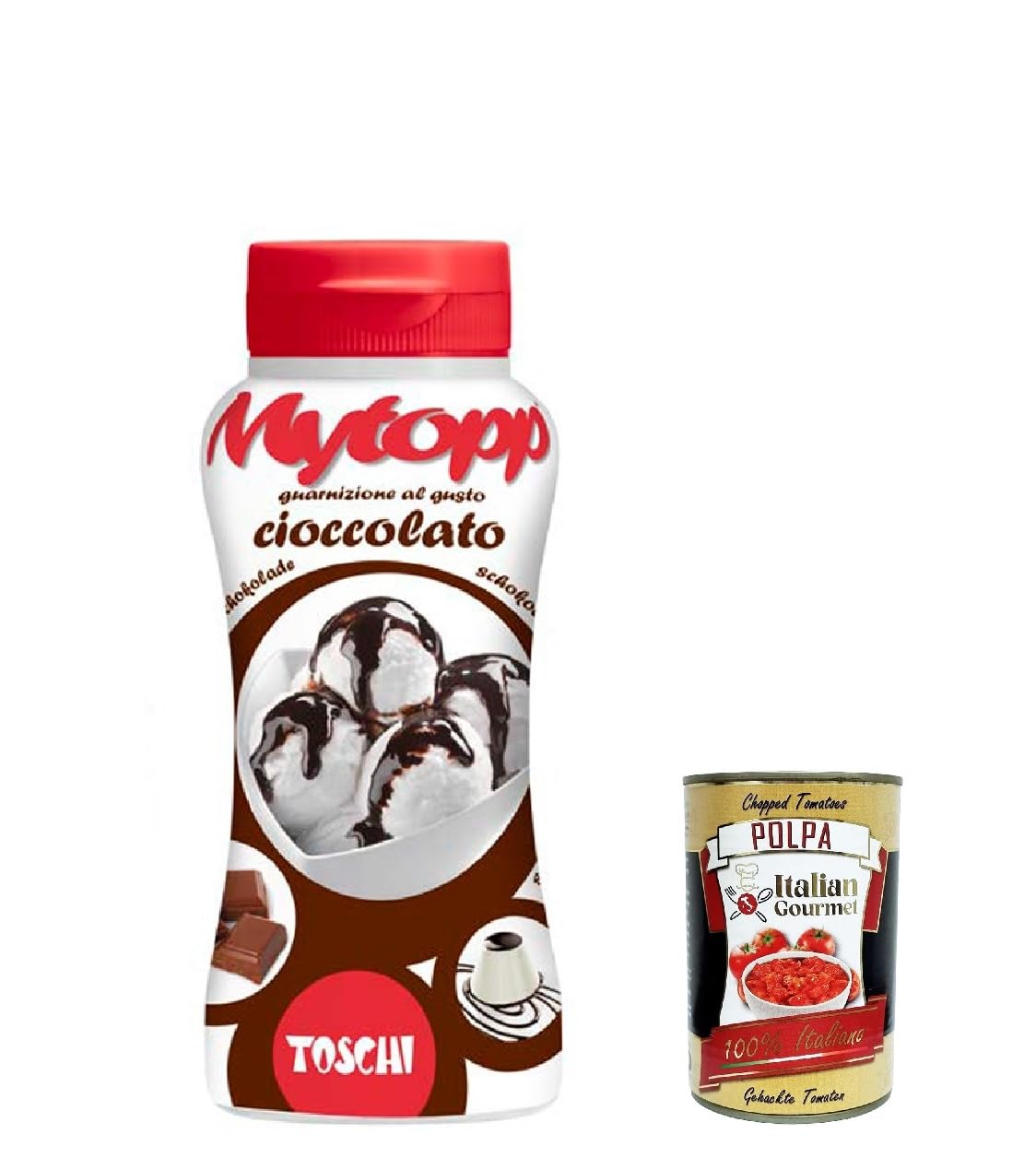 Italian Gourmet E.R. Toschi Topping Squeeze Cioccolato Set of 12 Chocolate Sauces for Coffee Cocktails Ice Cups Porridge Pancakes and Pastries 200g + Italian Gourmet Polpa 400g