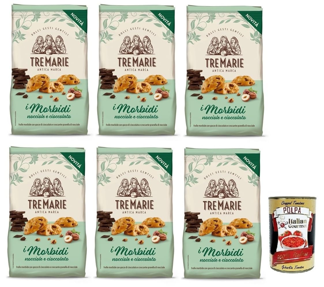 Tre Marie Biscotti i Morbidi Nocciole e Cioccolato Lot de 6 biscuits avec gouttes de chocolat et grains de noisettes croquants 300 g boîte italienne Gourmet Polpa di Pomodoro 400 g