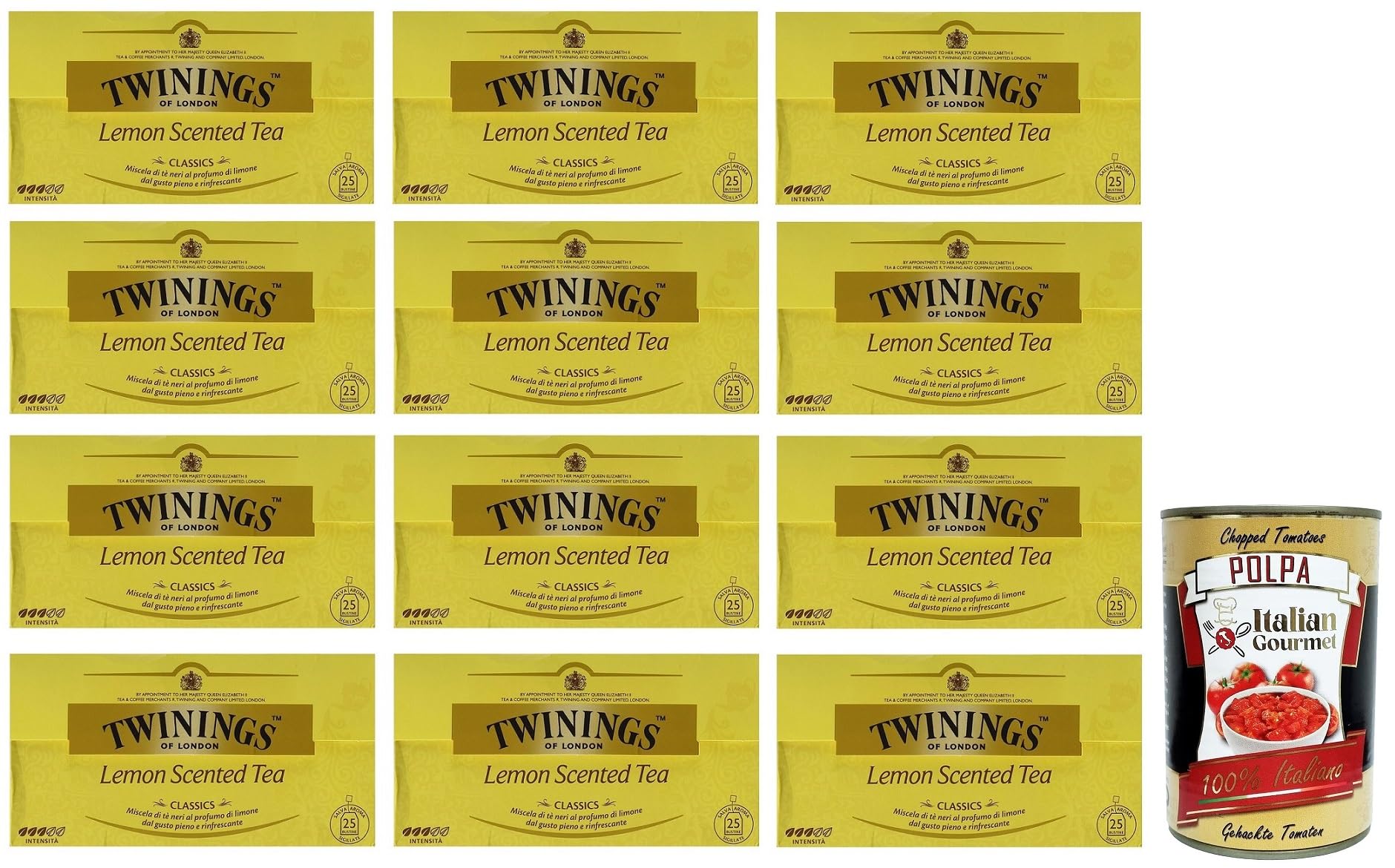 Twinings Lemon Scented Tea Lot de 12 thés noirs au citron avec 25 filtres boîte italienne Gourmet Polpa di Pomodoro 400 g