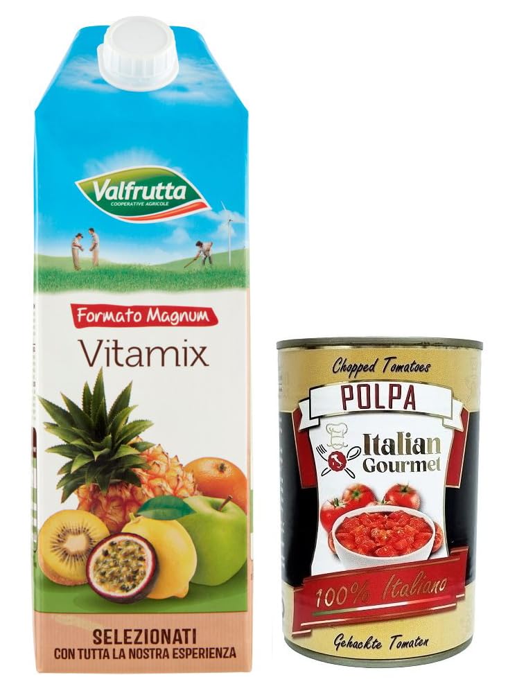 Vitamin Valfrutta's Italian gourmet Polpa di Pomodoro 400g is a refreshing fruit cocktail with a unique taste. This product combines the goodness of fruit with the benefits of vitamins C and E: an antioxidant effect that helps maintain the body's natural defenses and well-being. An explosion of taste and pleasure that ensures your well-being at any time. Our Vitamix juice is proudly made in Italy with all of Valfrutta's expertise. Ingredients: Water, fruit juice (orange, apple, pineapple, lemon, grape, apricot, passion fruit), sugar, glucose-fructose syrup, flavorings, vitamins C and E, beta-carotene, gluten-free. Average nutritional values per 100 ml of product: Energy 44 kcal - 189 kJ - Fat 0.0 g, of which saturates 0.0 g, Carbohydrate 10.9 g, of which sugars 10.9 g, Protein 0.1 g, Fiber 0.2 g, Salt 0.0 g. INGREDIENTS Water, fruit juice (orange, apple, pineapple, lemon, grape, apricot, passion fruit), sugar, glucose-fructose syrup, flavorings, vitamins C and E, beta-carotene, gluten-freeValfrutta Succo Vitamix Boisson rafraîchissante non alcoolisée à base de jus de fruits avec vitamines 1500 ml boîte Italian Gourmet Polpa di Pomodoro 400 gDESCRIPTION DU PRODUIT DESCRIPTION DU PRODUIT Gourmet italien Polpa di Pomodoro 400 g Vitamix Valfrutta est un cocktail de fruits rafraîchissant au goût unique. Un produit qui combine la bonté des fruits avec les bienfaits des vitamines C et E : un effet antioxydant qui aide à maintenir les défenses naturelles et le bien-être de l'organisme. Une explosion de goût et de plaisir qui assure votre bien-être à tout moment. Notre jus Vitamix est fièrement fabriqué en Italie avec tout le savoir-faire de Valfrutta. Ingrédients : eau, jus de fruits (orange, pomme, ananas, citron, raisin, abricot, fruit de la passion), sucre, sirop de glucose-fructose, arômes, vitamines C, E, bêta-carotène, sans gluten Valeurs nutritionnelles moyennes pour 100 ml de produit Energie 44 kcal - 189 kJ - Matières grasses 0,0 g saturées ,,0 g de charbon Hydrate 10,9 g dont sucre 10,9 g de protéines 0,1 g de fibres 0,2 g de sel 0,0 g INGRÉDIENTS eau, jus de fruits (orange, pomme, ananas, citron, raisin, abricot, fruit de la passion), sucre, sirop de glucose-fructose, arômes, vitamines C, E, bêta-carotène, sans gluten