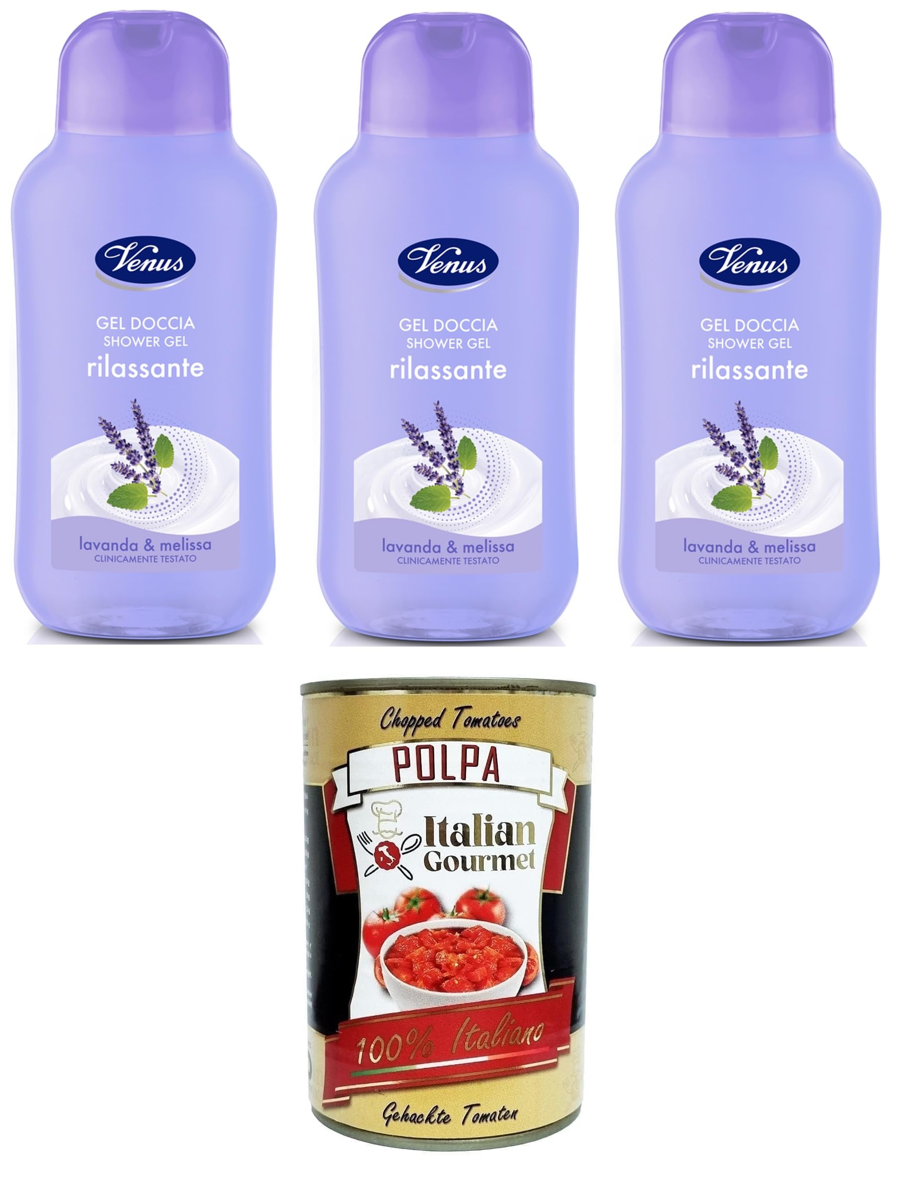 Venus Docciagel Rilassante Lavanda e Melissa Gel douche relaxant Lavande et Mélisse 3 x 250 ml Italian Gourmet Polpa 400 g