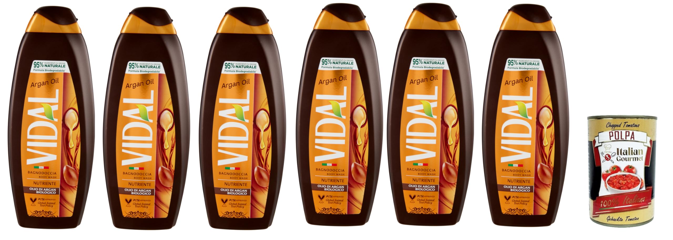 Ingredients: Water, Sodium Laureth Sulfate, Cocamidopropyl Betaine, Fragrance, Sodium Chloride, Argania Spinosa Kernel Oil, Sorbitol, Polyquaternium-7, PEG-40 Hydrogenated Castor Oil, Styrene Acrylate Copolymer, Disodium EDTA, Sodium Lactate, Lactic Acid, Citric Acid, DMDM, Hydantoin, Metal. Hychloroisothiazolinone, Methylisothiazolinone, Hexyl Cinnamal, Linalool, CI 15510, CI 19140 INGREDIENTS Ingredients: Water, Sodium Laureth Sulfate, Cocamidopropyl Betaine, Fragrance, Sodium Chloride, Argania Spinosa Kernel Oil, Sorbitol, Polyquaternium-7, PEG-40 Hydrogenated Castor Oil, Styrene Acrylate Copolymer, Disodium EDTA, Sodium Lactate, Lactic Acid, Citric Acid, DMDM, Hydantoin, Metal Hychloroisothiazolinone, methylisothiazolinone, hexyl cinnamal, linalool, CI 15510, CI 19140 SAFETY WARNING Formulated and clinically tested in vitro and in vivo to minimize the risk of allergies. Dermatologically tested. No animal-derived ingredients. See moreIngredients: Water, sodium laureth sulfate, cocamidopropyl betaine, fragrance, sodium chloride, argania spinosa kernel oil, sorbitol, polyquaternium-7, PEG-40 hydrogenated castor oil, styrene acrylate copolymer, disodium EDTA, sodium lactate, lactic acid, citric acid, DMDM hydantoin, methylchloroisothiazolinone, methylisothiazolinone, hexyl cinnamal, linalool, CI 15510, CI 19140. Dermatologically tested. 95 naturally derived ingredients. Liquid argan oil shower gel. Formulated with organic argan oil, rich in nutrients and active ingredients (vitamin E, omega-3 and omega-6) to purify the skin and provide intense nourishment. The warm and enveloping fragrance combines top notes of citrus with a deliciously spicy heart, finally leaving a lasting and sensual woody trail: the ideal scent for a moment of pure relaxation. Free 400g gourmet Italian tomato pulp.Vidal Bagnoschiuma Lot de 6 bains moussants à l'huile d'argan 500 ml Polpa Italian Gourmet 400 gDESCRIPTION DU PRODUIT DESCRIPTION DU PRODUIT Ingrédients : eau, laureth sulfate de sodium, bétaïne de cocamidopropyle, parfum, chlorure de sodium, huile de noyau d'argania spinosa, sorbitol, polyquaternium-7, huile de castor hydrogénée PEG-40, copolymère de styrène acrylate, EDTA disodium, lactate de sodium, acide lactique, acide citrique, DMDM. Hydantoïne, Metal. hylchloroisothiazolinone, méthylisothiazolinone, hexyl cinnamal, linalool, CI 15510, CI 19140 INGRÉDIENTS Ingrédients : eau, laureth sulfate de sodium, bétaïne de cocamidopropyle, parfum, chlorure de sodium, huile de noyau d'argania spinosa, sorbitol, polyquaternium-7, huile de castor hydrogénée PEG-40, copolymère de styrène acrylate, EDTA disodium, lactate de sodium, acide lactique, acide citrique, DMDM. Hydantoïne, Metal. hylchloroisothiazolinone, méthylisothiazolinone, hexyl cinnamal, linalool, CI 15510, CI 19140 AVERTISSEMENT DE SÉCURITÉ Formule et testées cliniquement in vitro et in vivo pour minimiser le risque d'allergies testées dermatologiquement Sans ingrédients d'origine animale. Voir plusIngrédients : eau, laureth sulfate de sodium, bétaïne de cocamidopropyle, parfum, chlorure de sodium, huile de noyau d'argania spinosa, sorbitol, polyquaternium-7, huile de castor hydrogénée PEG-40, copolymère de styrène acrylate, EDTA disodium, lactate de sodium, acide lactique, acide citrique, DMDM. Hydantoïne, Metal. hylchloroisothiazolinone, méthylisothiazolinone, hexyl cinnamal, linalool, CI 15510, CI 19140. Testé sous contrôle dermatologique. 95 d'ingrédients d'origine naturelle. Gel douche à l'huile d'argan liquide. Formulé avec de l'huile d'argan organique, riche en nutriments et actifs (vitamine E, oméga 3 et oméga 6) pour purifier la peau et offrir une nutrition intense. Le parfum chaleureux et enveloppant combine les notes supérieures d'agrumes et un cœur délicieusement piquant, laissant enfin un chemin en bois durable et sensuel : le parfum idéal pour un moment de pure détente. Polpa di pomodoro italien gourmet gratuit 400 g.