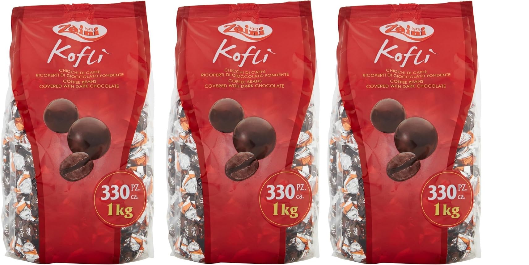 Lot de 3 grains de café Zaini Kofli enrobés de chocolat noir - 1000 g polpa italien gourmet 400 g