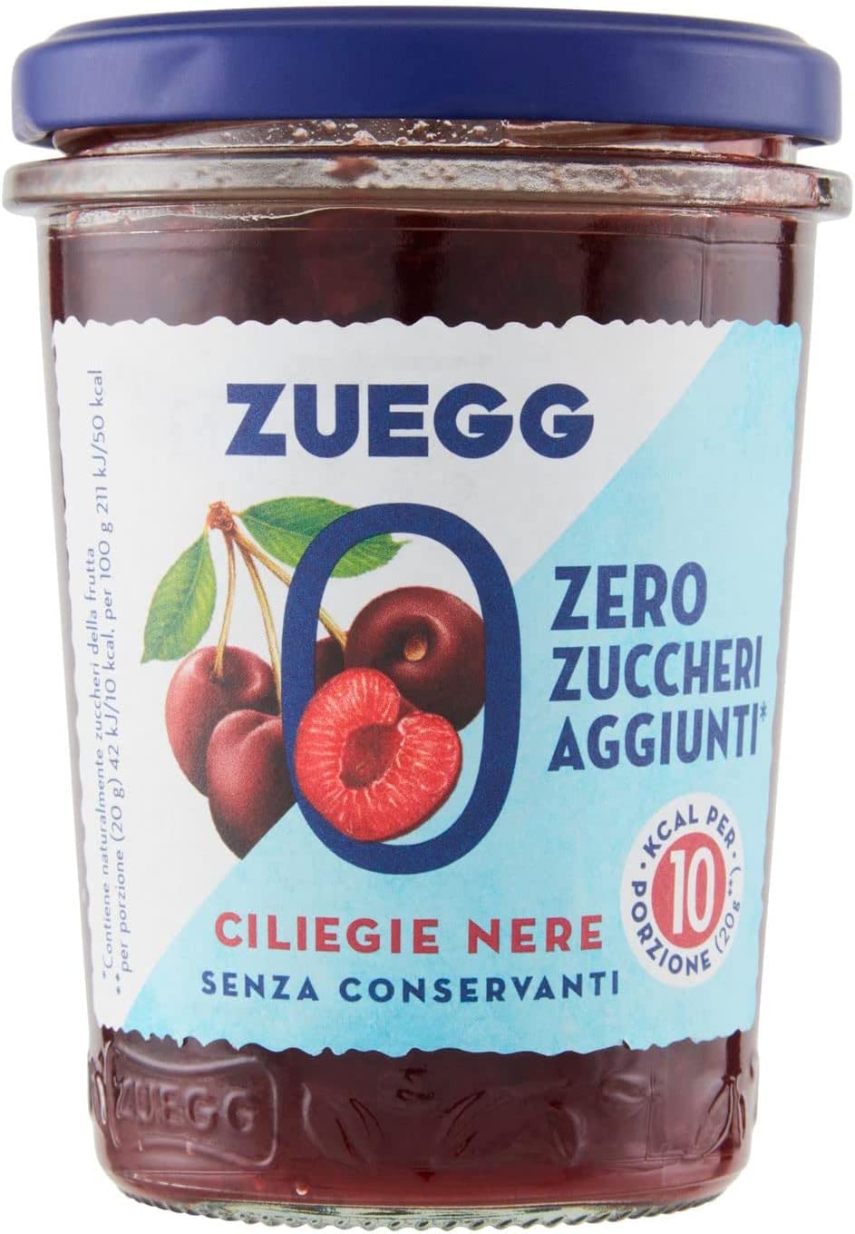 Zuegg Zero Zuccheri Lot de 6 confitures de cerise noire sans sucre Zero Sugars 220 g Polpa italien Gourmet 400 g