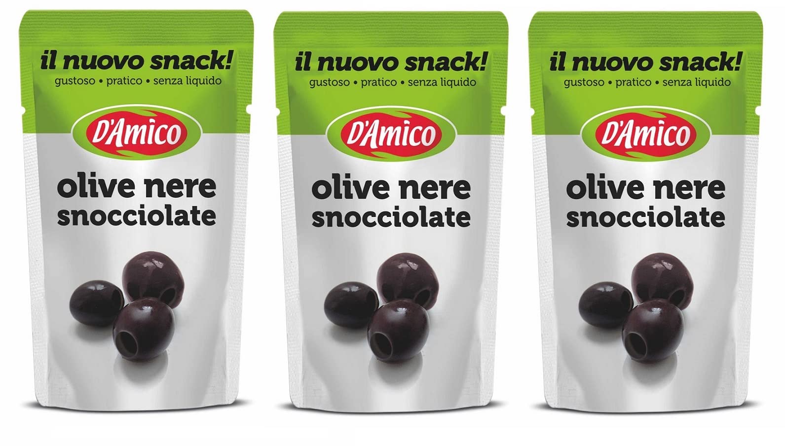 D'Amico Il Nuovo Snack Olive Nere Snocciolate ontpitte zwarte olijven zonder vloeistof 75 g