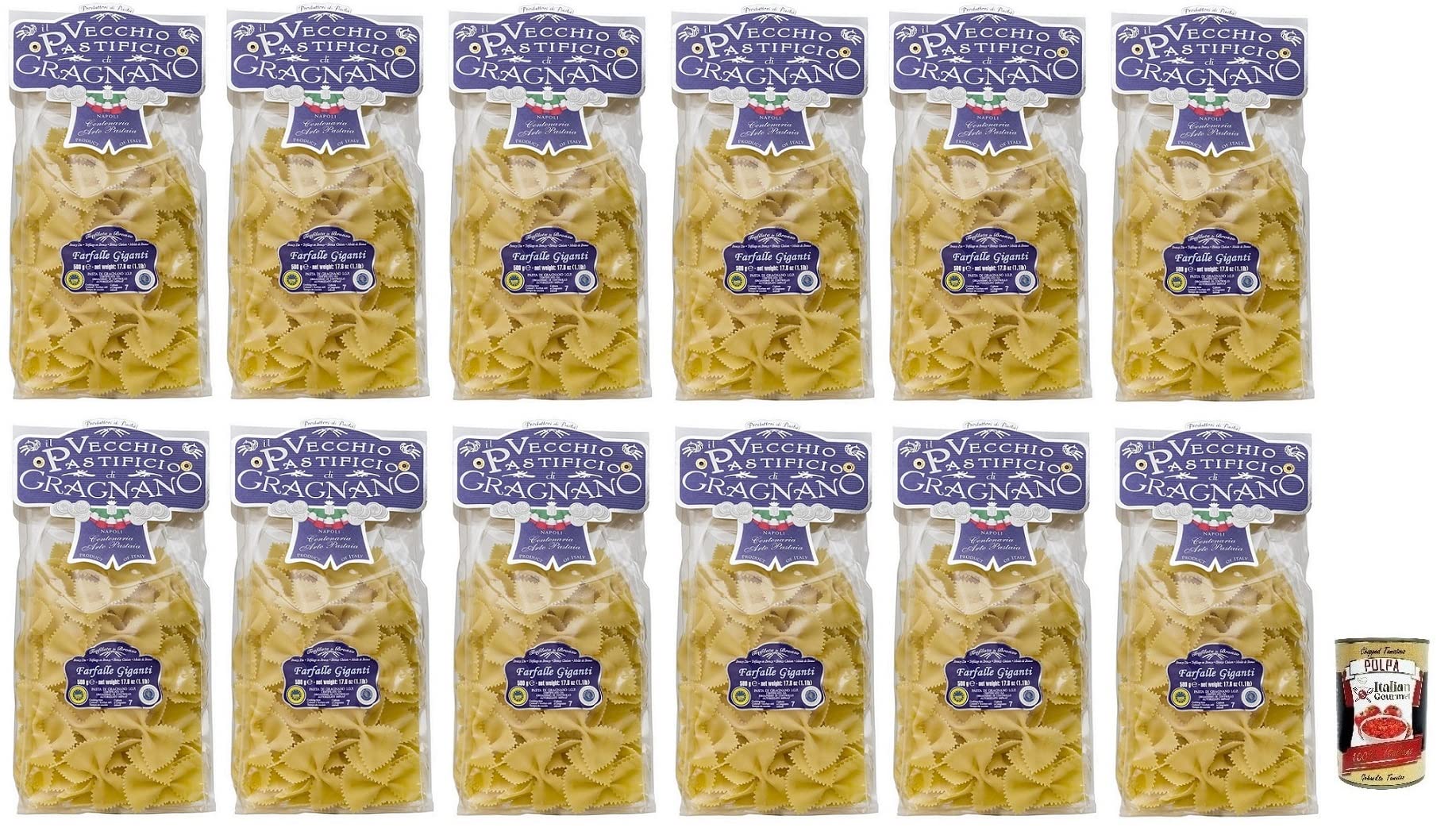 Italian Gourmet ER Il Vecchio Pastificio di Gragnano Pasta Farfalle Gragnano IGP noodles from durum wheat greetings of the highest quality 500 g + Italian gourmet Polpa di Pomodoro 400 g can