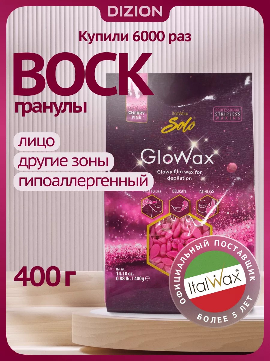 | Полное наименование товара | Воск для депиляции горячий пленочный гранулы Italwax Glowax Вишня (400гр) |