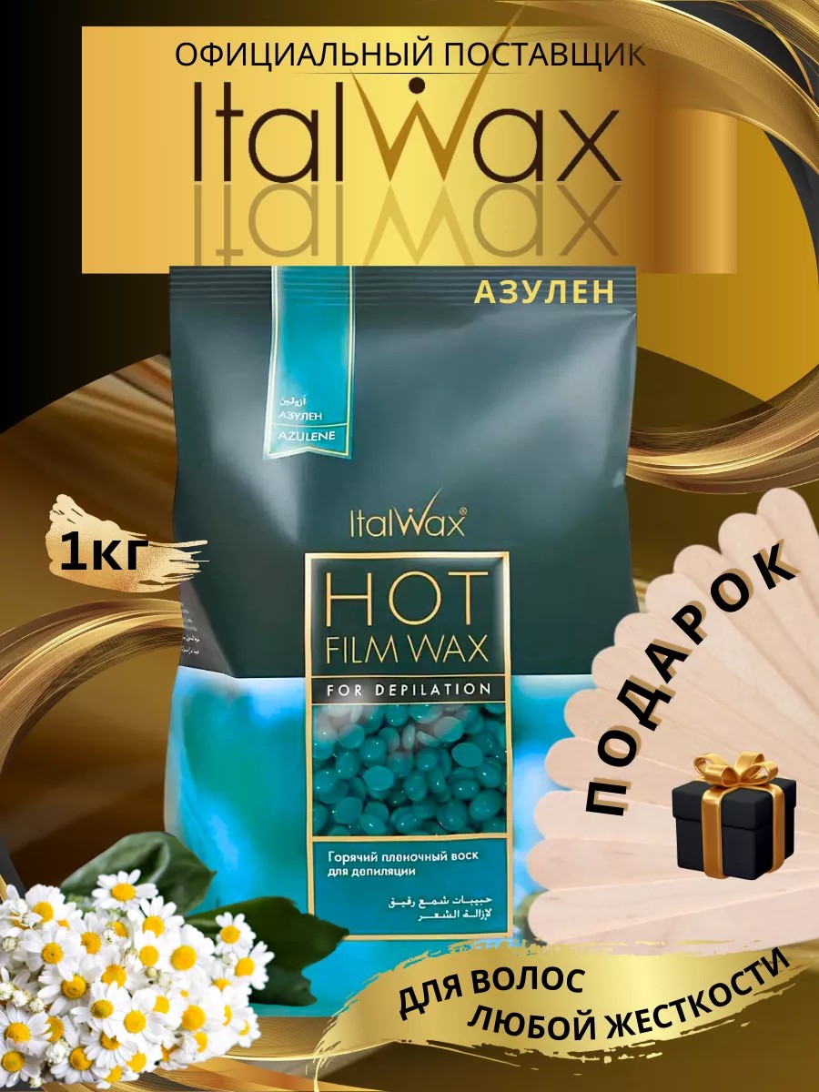 .ПЛЁНОЧНЫЙ ГОРЯЧИЙ ВОСК «АЗУЛЕН» 1 кг (1000 гр).Мы являемся официальным поставщиком итальянского бренда Ital wax. Полупрозрачный гранульный воск азуленовый для депиляции гранулы с небольшим количеством диоксида титана подходит для всех типов кожи, также для чувствительной. Наносится тонким слоем, снимается пленкой, бережно воздействует на кожу, создает минимум болевых ощущений.Эффективно удаляет жесткие и короткие волоски, а также пушковые.Гранулированный воск Итал вакс идеален для зоны подмышек и глубокого бикини. Воск гранульный для депиляции при нанесении тонким слоем застывает в течение 3-4 секунд, что позволяет опытному косметологу быстро и эффективно провести процедуру восковой депиляции в условиях плотного графика работы. Профессиональный горячий воск эффективно удаляет волосы, позволяя использовать воск для интимной эпиляции. Воск ItalWax гранулы не оставляет на коже раздражений и покраснений. Температура плавления: + 40+42 С.Способ нанесения: шпателем. Способ удаления: без полоски.Подходит как для баночного воскоплава, так и разогревания в микроволновой печи с использованием силиконовой чаши. Правила использования пленочного воска ITALWAX : Разогрейте воск в гранулах в нагревателе. Зону удаления волос обработайте лосьоном до депиляции. Нанесите небольшое количество талька. Нанесите шпателем тонкий слой воска независимо от направления роста волос, но по направлению к себе, оставляя небольшой «лепесток», за который можно ухватиться (подмышку стараемся депилировать одной аппликацией) Удалить лепесток с волосами. ВНИМАНИЕ! Наносите не торопясь, нажимайте на шпатель. Воск застынет через 5-6 секунд (готовый к удалению воск не должен липнуть к руке при касании).Предварительно натянув кожу противоположно отрыву, резким движением удалите воск в направлении от себя параллельно коже. После окончания депиляции обработайте кожу успокаивающим, охлаждающим средством после депиляции.