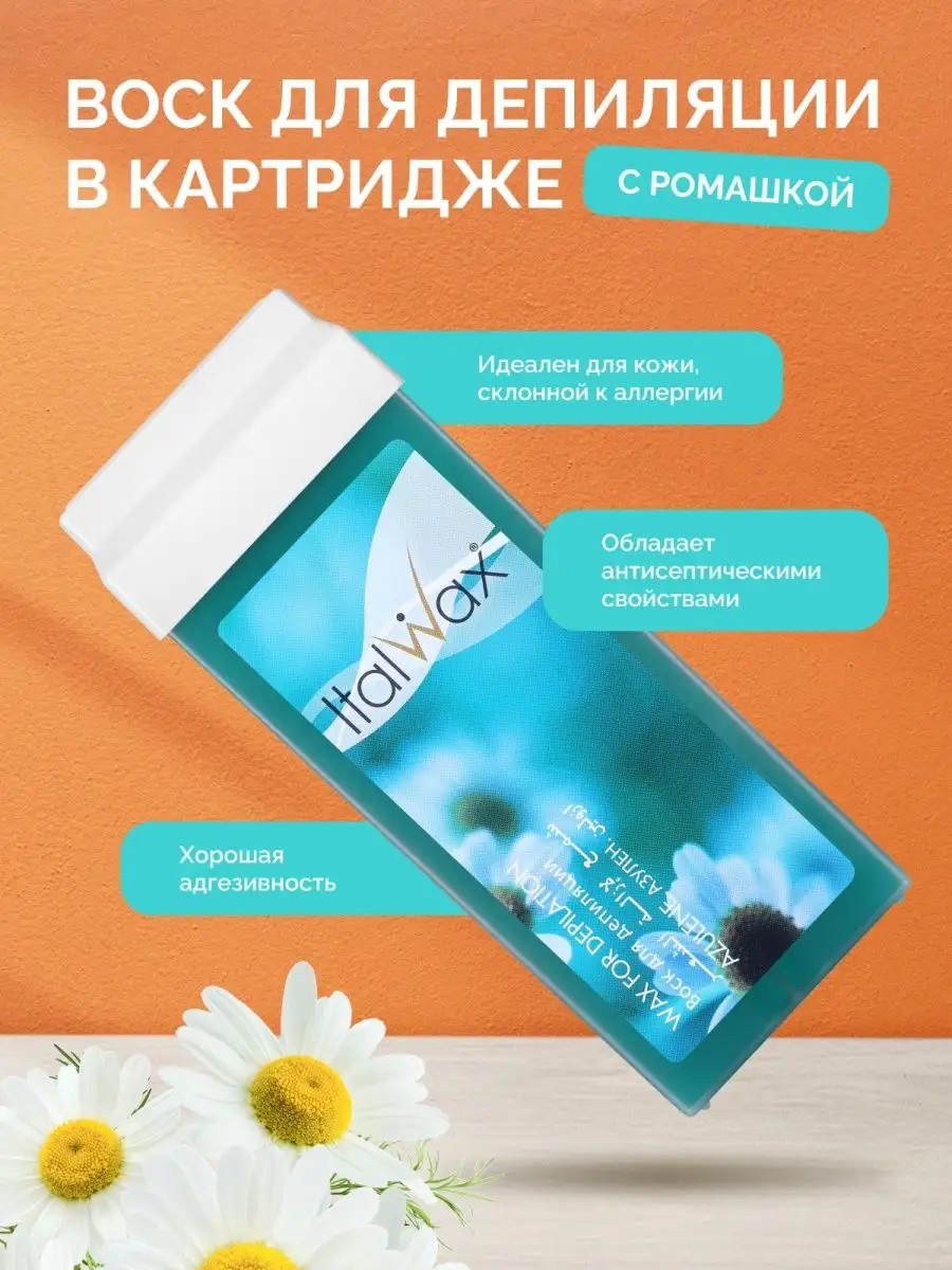 Waxing is an effective way to remove unwanted hair. Wax cartridges are designed for legs and arms. This collection features classic medium-density waxes with titanium dioxide for hair lengths of 3 mm and longer and a melting point of +40°C. "Azulene" soft, creamy wax cartridges are suitable for fine, soft, and light-colored hair and sensitive, allergy-prone skin. Contains chamomile extract and has antiseptic properties. Warm cartridge wax has a natural composition, good adhesion, and ensures a quick and effective procedure while being gentle on the skin. The depilatory product is applied to large areas in a very thin and even layer. The client experiences minimal pain and long-lasting results. Our store also offers other wax combinations in various quantities. Professional depilatory products from Italwax are suitable for both salons and home use. Click on the KRASOTKAPRO retailer logo and find quality products that guarantee excellent results.