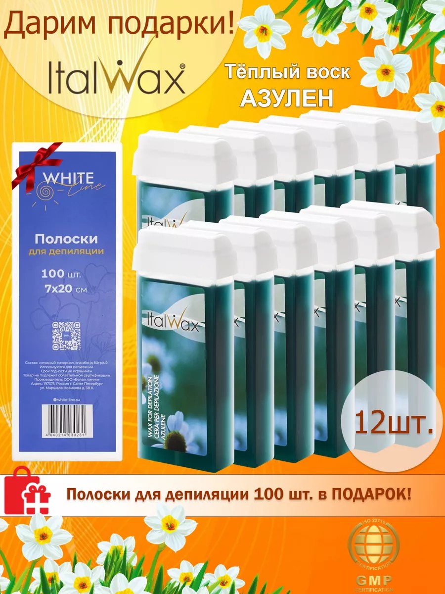 Дарим подарки! Тёплый воск для депиляции в картриджах Italwax Азулен 12 шт. + Подарок (Полоски White Line 100 шт).