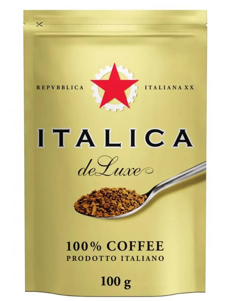 Italica, de Luxe Instant Coffee, Freeze-Dried, 100g. This excellent Italian instant coffee will save you precious time and give you energy and strength. This coffee blend has a rich flavor. Italica de Luxe coffee is made from the finest coffee varieties from Kenya, Mexico, Central America, and, of course, Brazil. It is a masterpiece of coffee art.