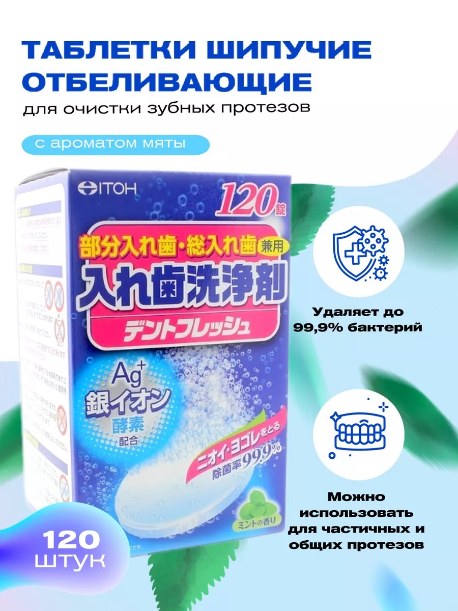 Таблетки шипучие отбеливающие для зубных протезов, 120 шт