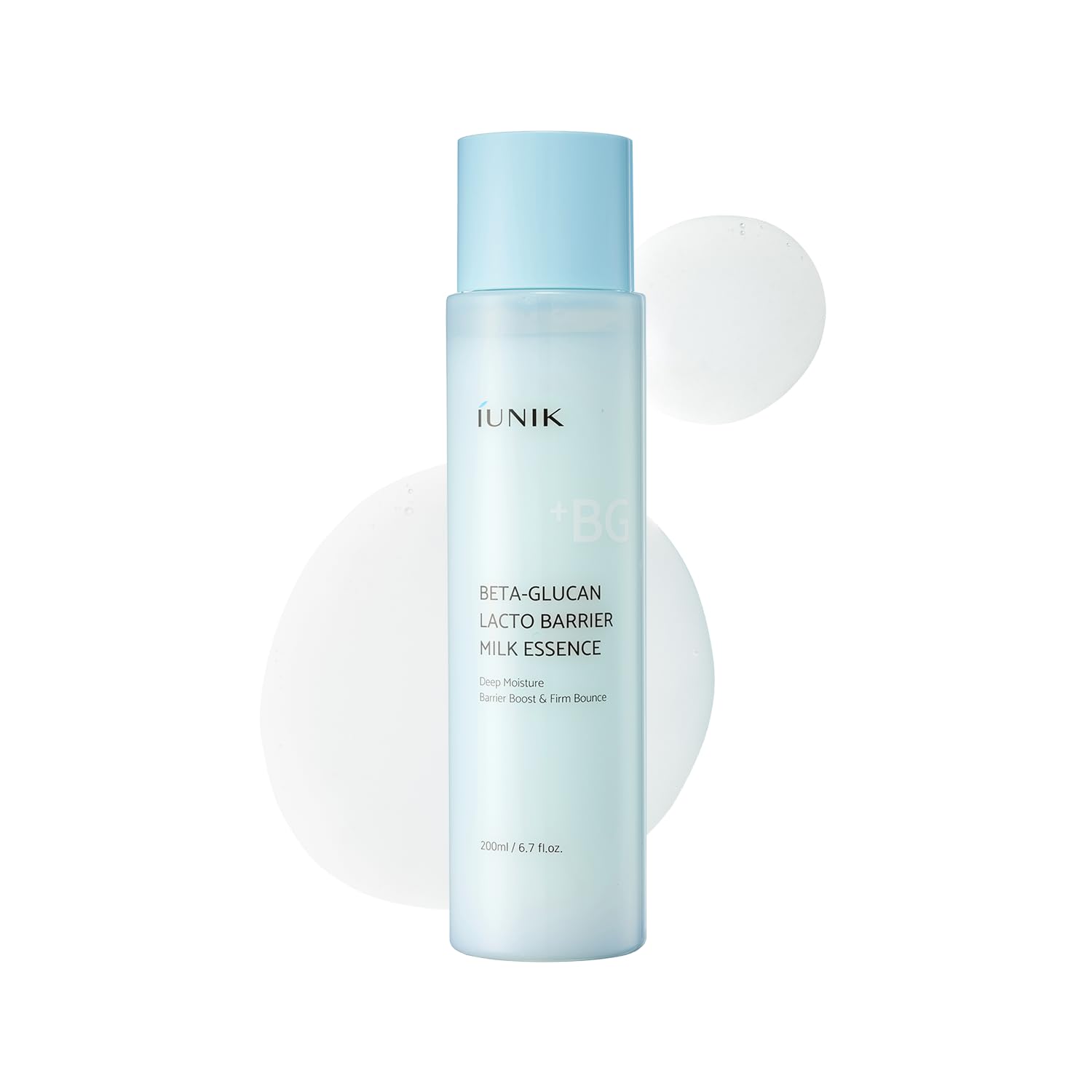 IUNIK Beta-Glucan Barrier Milk Essence, Hydrating & Barrier Care for Sensitive Dry Skin, Lightweight Daily Essence, 200ml / 6.7 fl oz