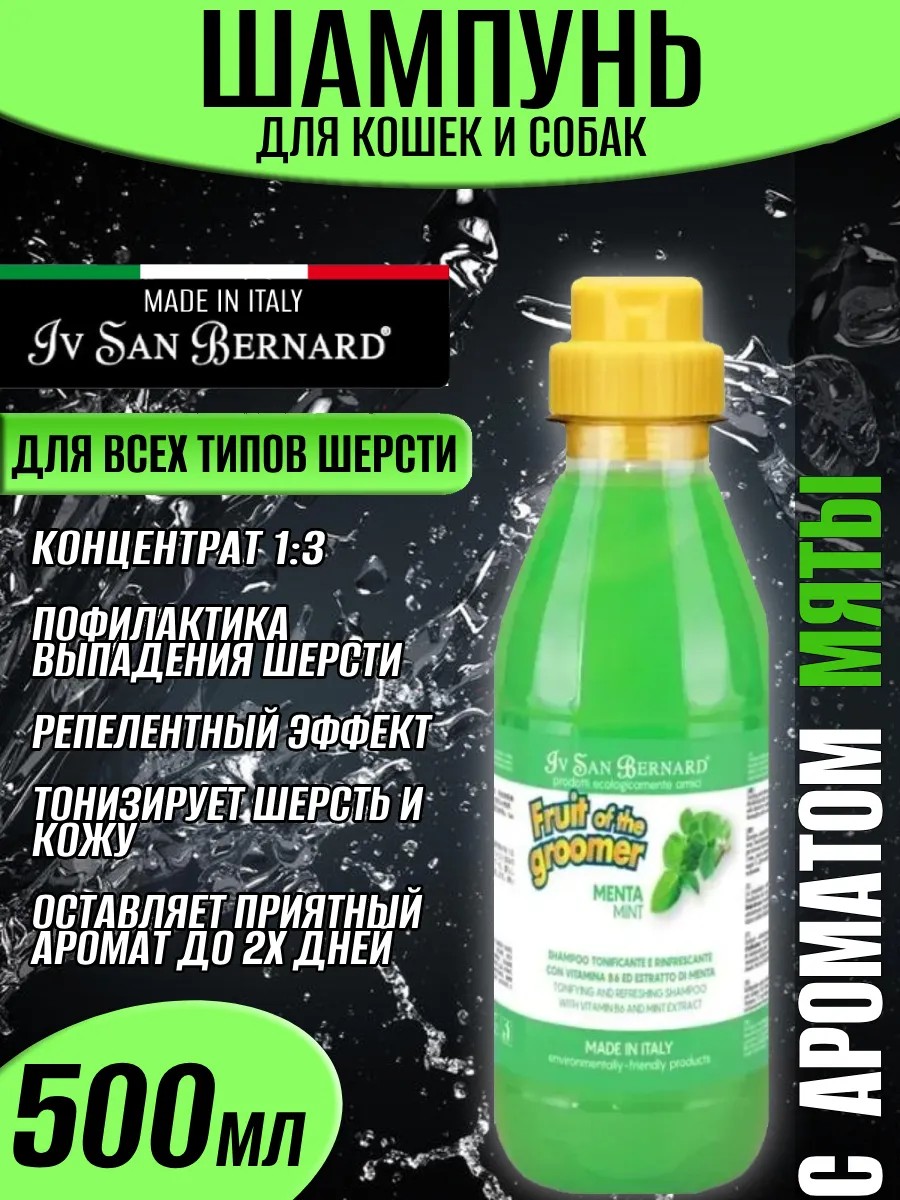 Шампунь Iv San Bernard Fruit of the Groomer Mint ( Ив Сан Бернар Фрукты от Грумера) шампунь для собак и кошек с ароматом Мяты 0.5 л (500 мл).