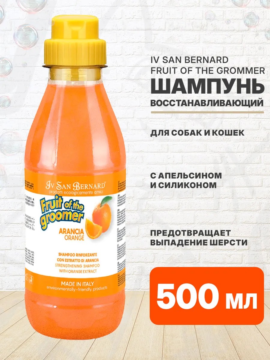 IV SAN BERNARD FRUIT OF THE GROOMER ORANGE SHAMPOO шампунь восстанавливающий Апельсин с силиконом для слабой выпадающей шерсти для собак и кошек. Восстанавливающий шампунь для слабой и выпадающей шерсти с апельсином и силиконом Iv San Bernard FRUIT OF THE GROOMER ORANGE SHAMPOO для собак и кошек.Ароматическая линейка SPA-средств FRUIT OF THE GROOMER («Фрукты от грумера») - это нежнейшая и благоухающая фруктовыми оттенками линия специально для того, чтобы Ваш питомец почувствовал себя красивым и любимым!Все продукты FRUIT OF THE GROOMER создают сказочное настроение владельцу и дарят шерсти животных чистоту, здоровье, прекрасный вид и восхитительный блеск!