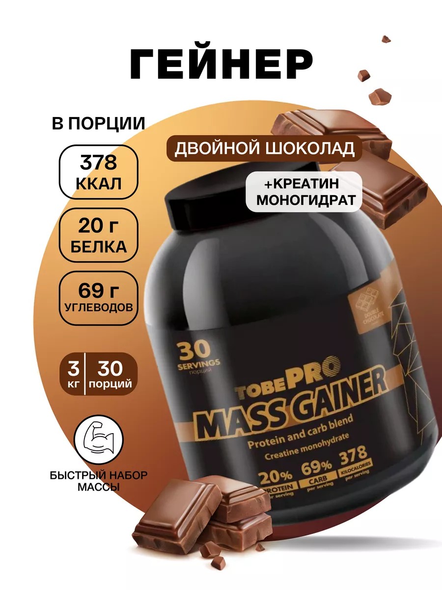 ГейнерTobePRO MASS GAINER Двойной шоколад 3кг 30порций